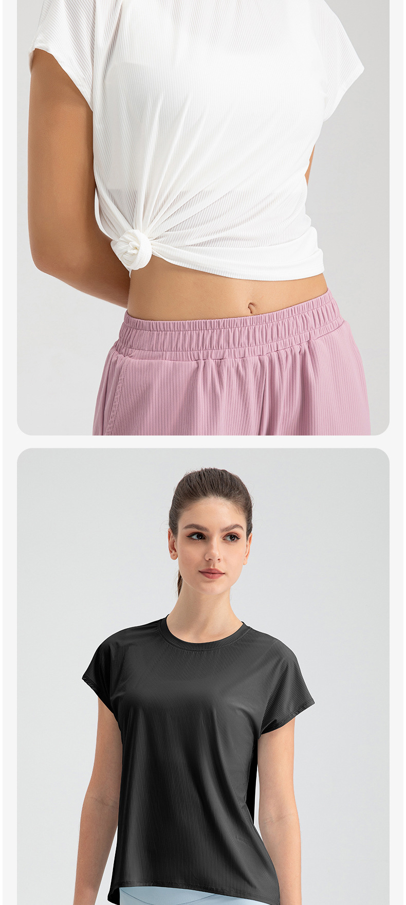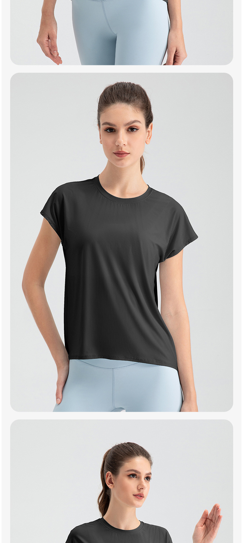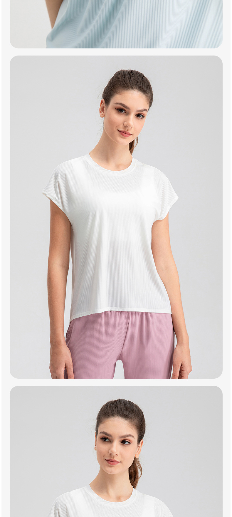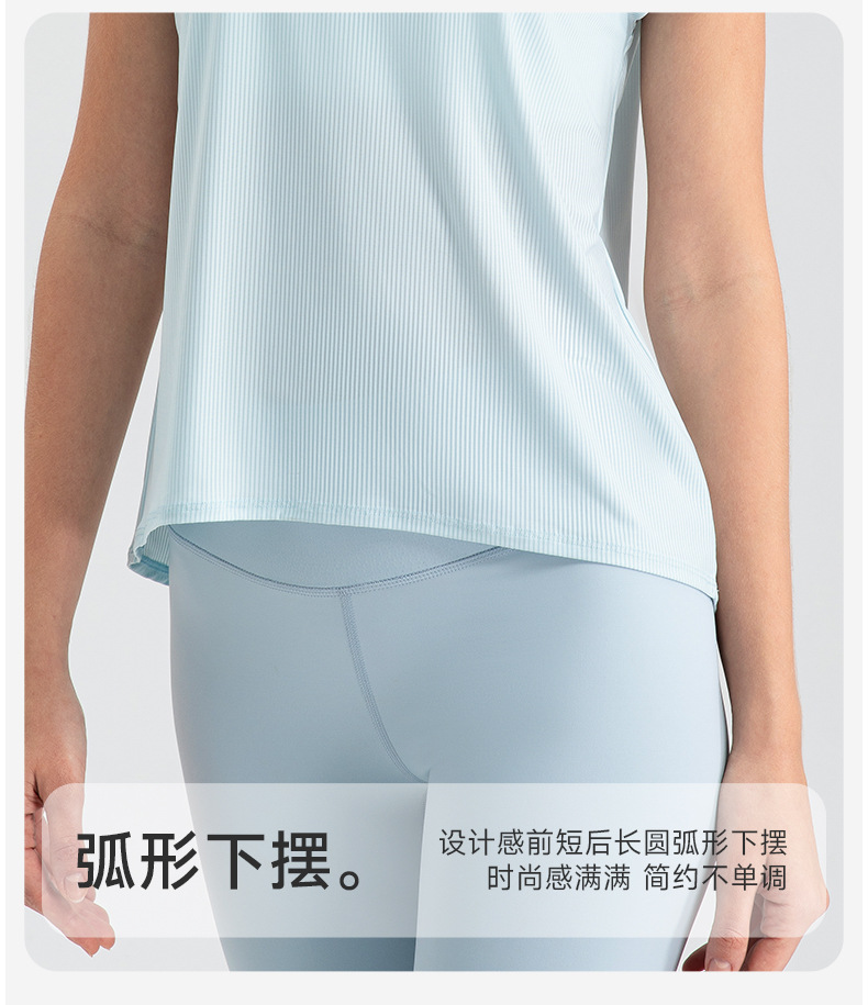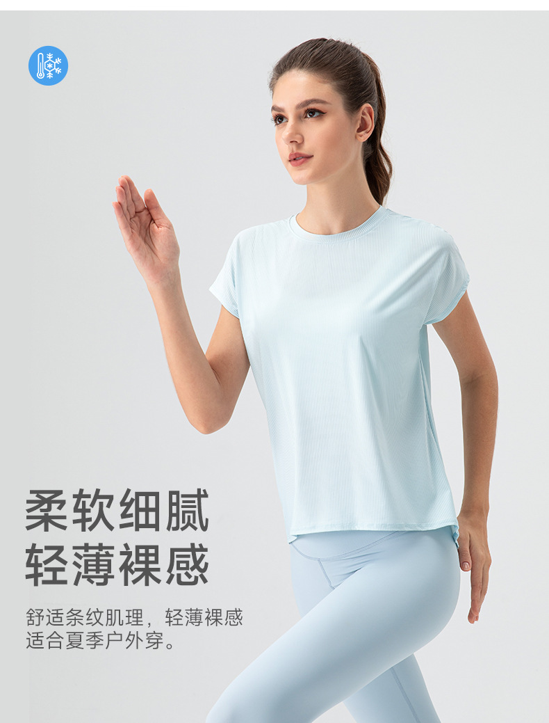 여자의 여름 시원한 통기성 스포츠 반팔 요가 세트 느슨한 캐주얼 탑 속건 달리기 피트니스 반팔 32234스토어 가기