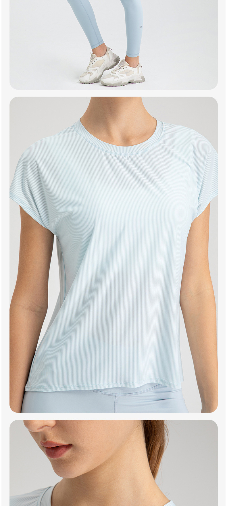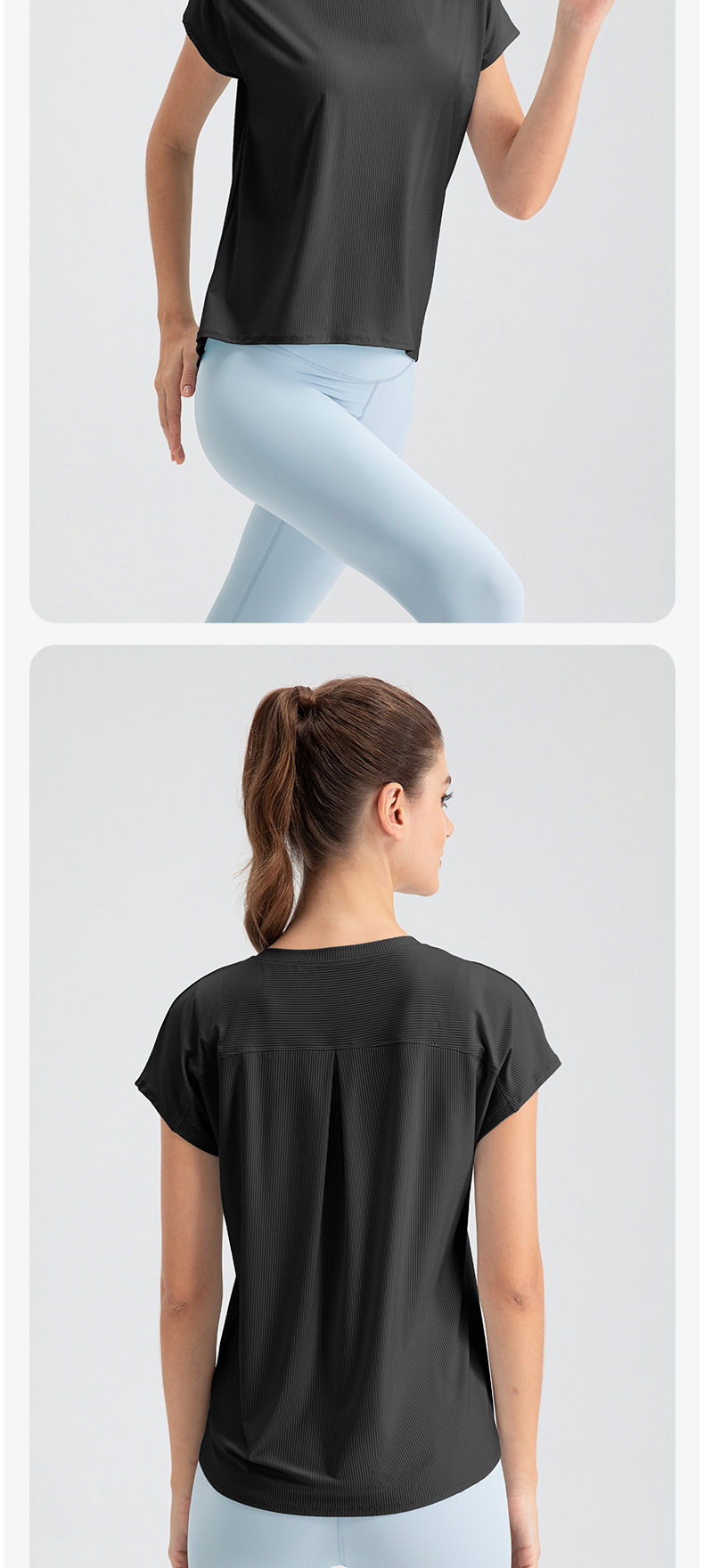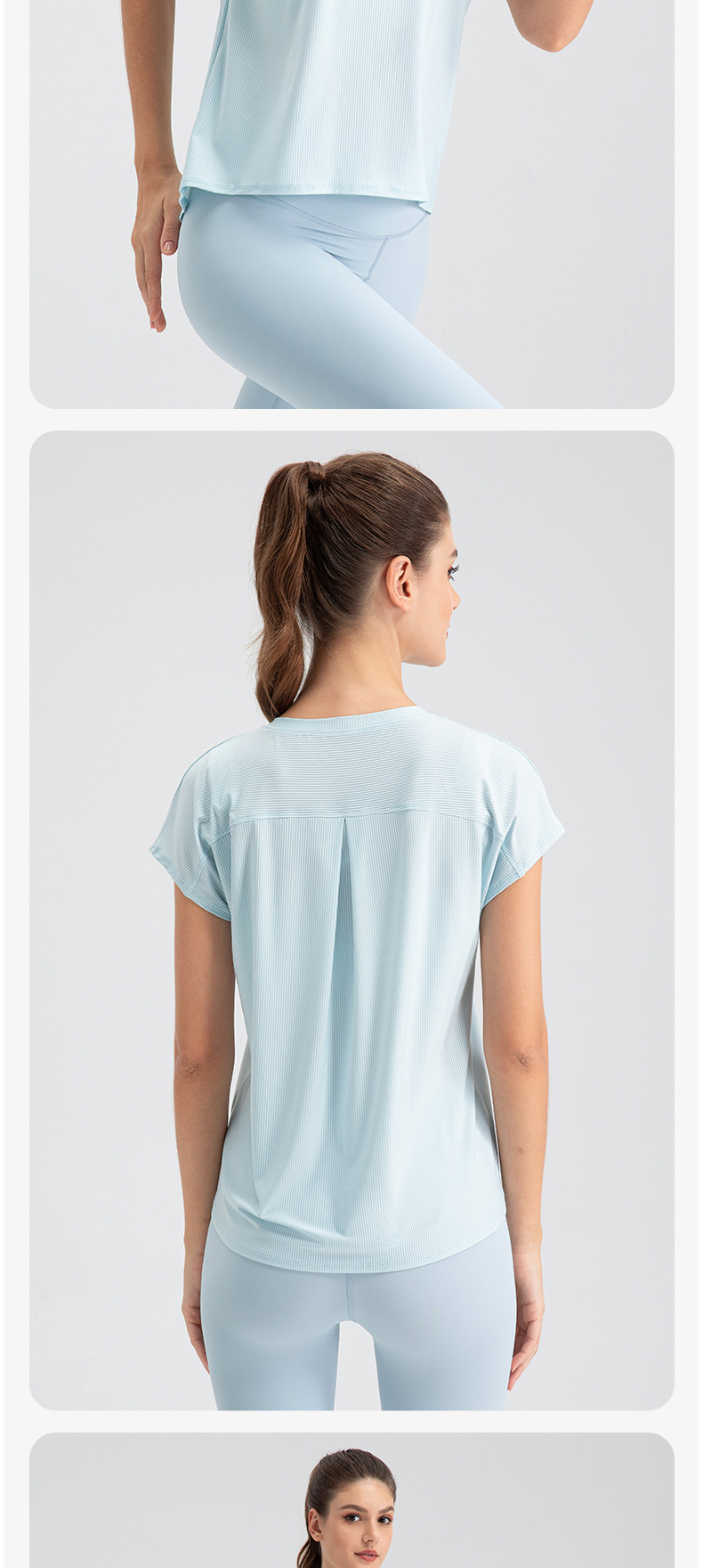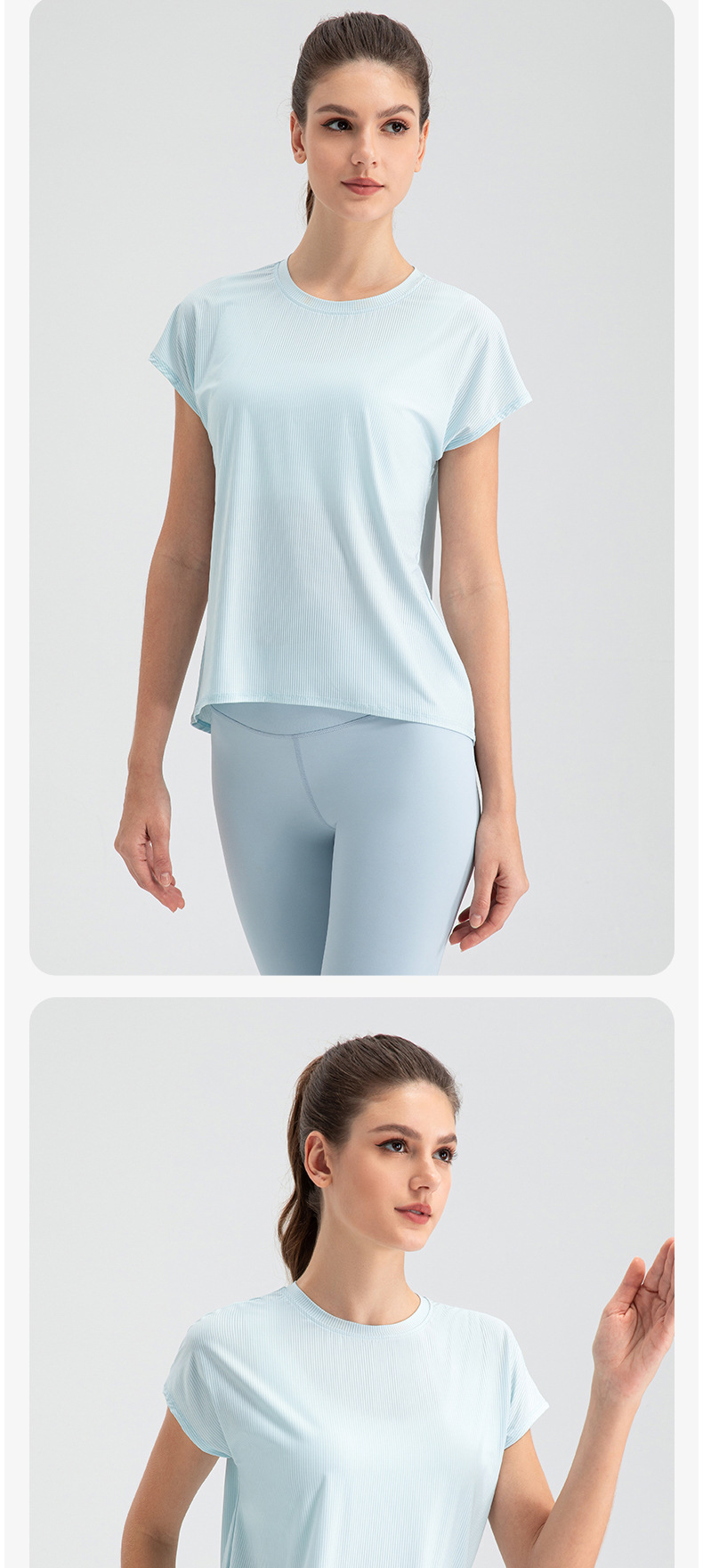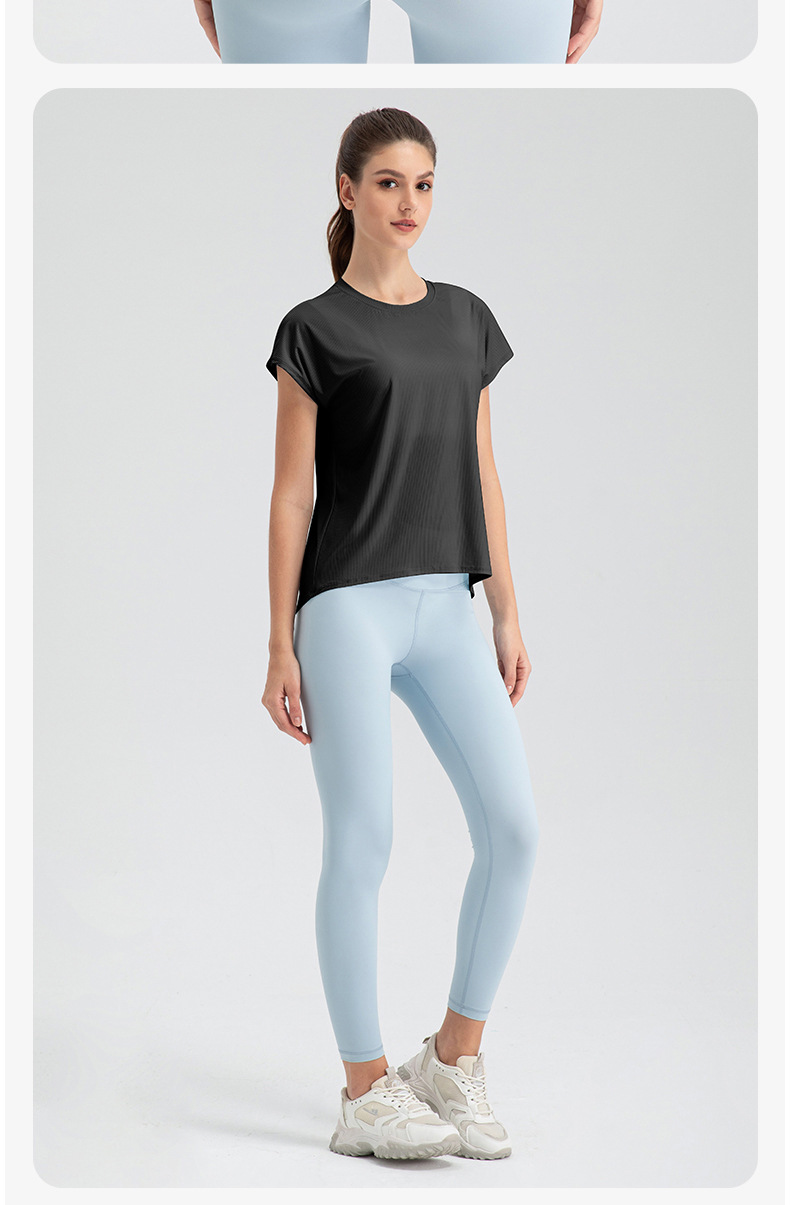 여자의 여름 시원한 통기성 스포츠 반팔 요가 세트 느슨한 캐주얼 탑 속건 달리기 피트니스 반팔 32234