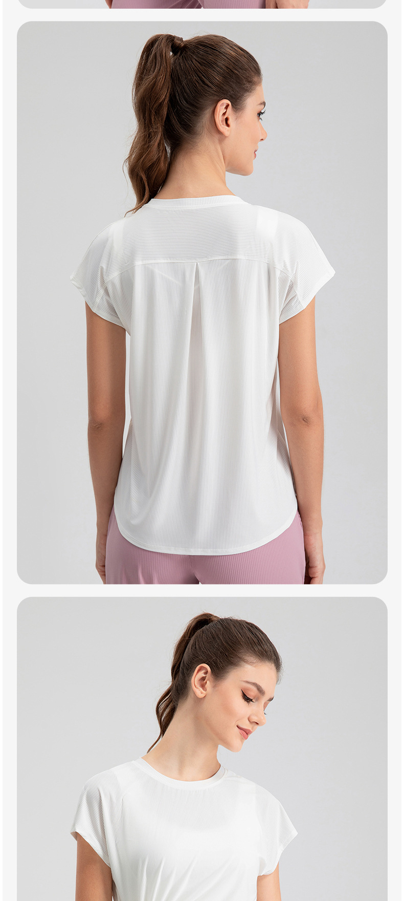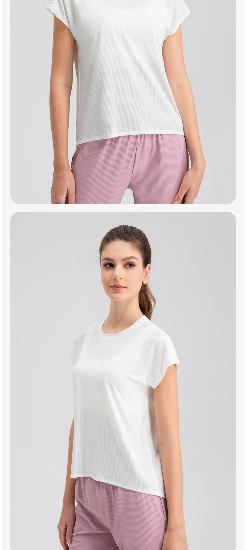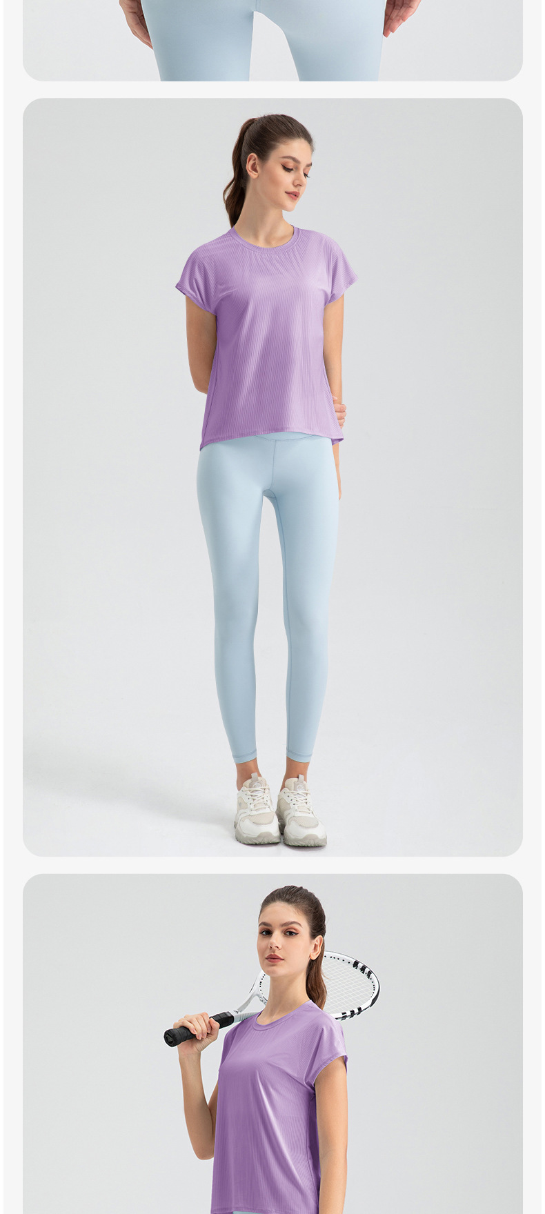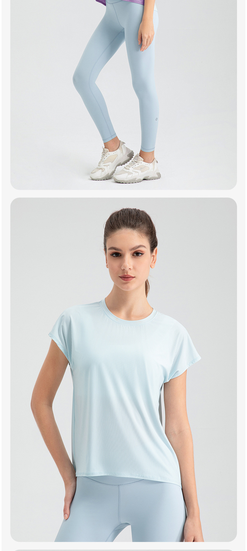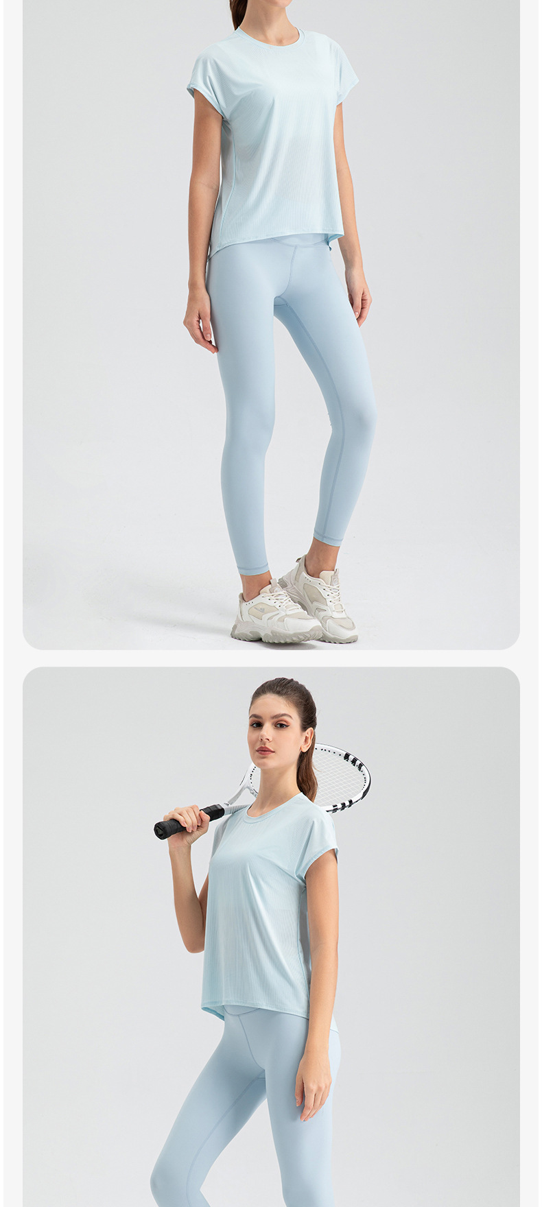 여자의 여름 시원한 통기성 스포츠 반팔 요가 세트 느슨한 캐주얼 탑 속건 달리기 피트니스 반팔 32234