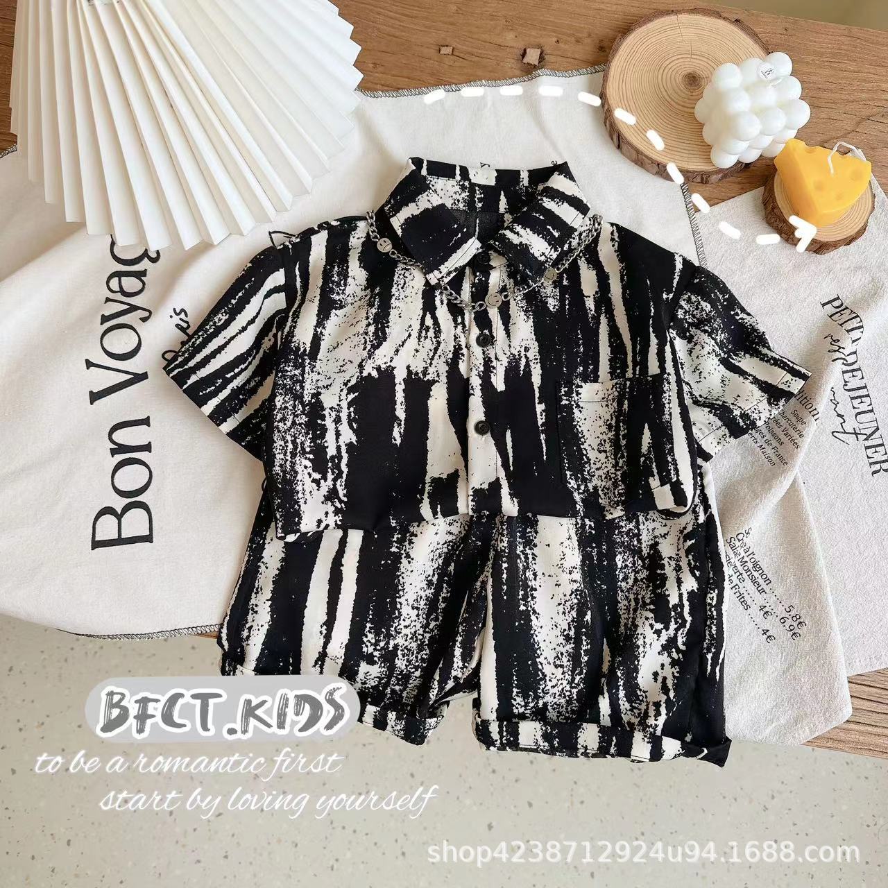 더피 잘 생긴 소년 아동복 여름 셔츠 세트 소년의 휴가 스타일 얇은 반팔 바지 아기의 거리 옷 멋진 잘 생긴스토어 가기