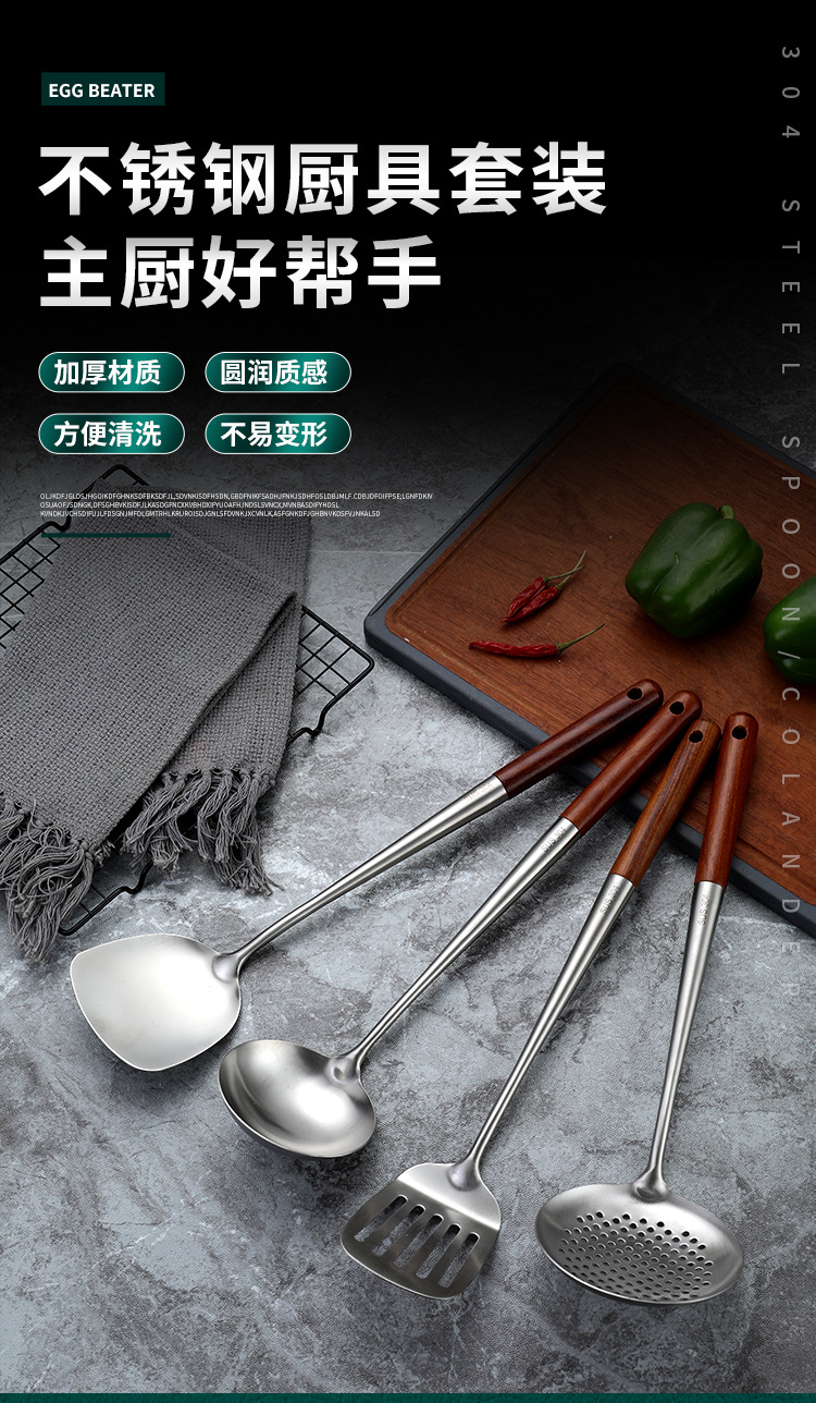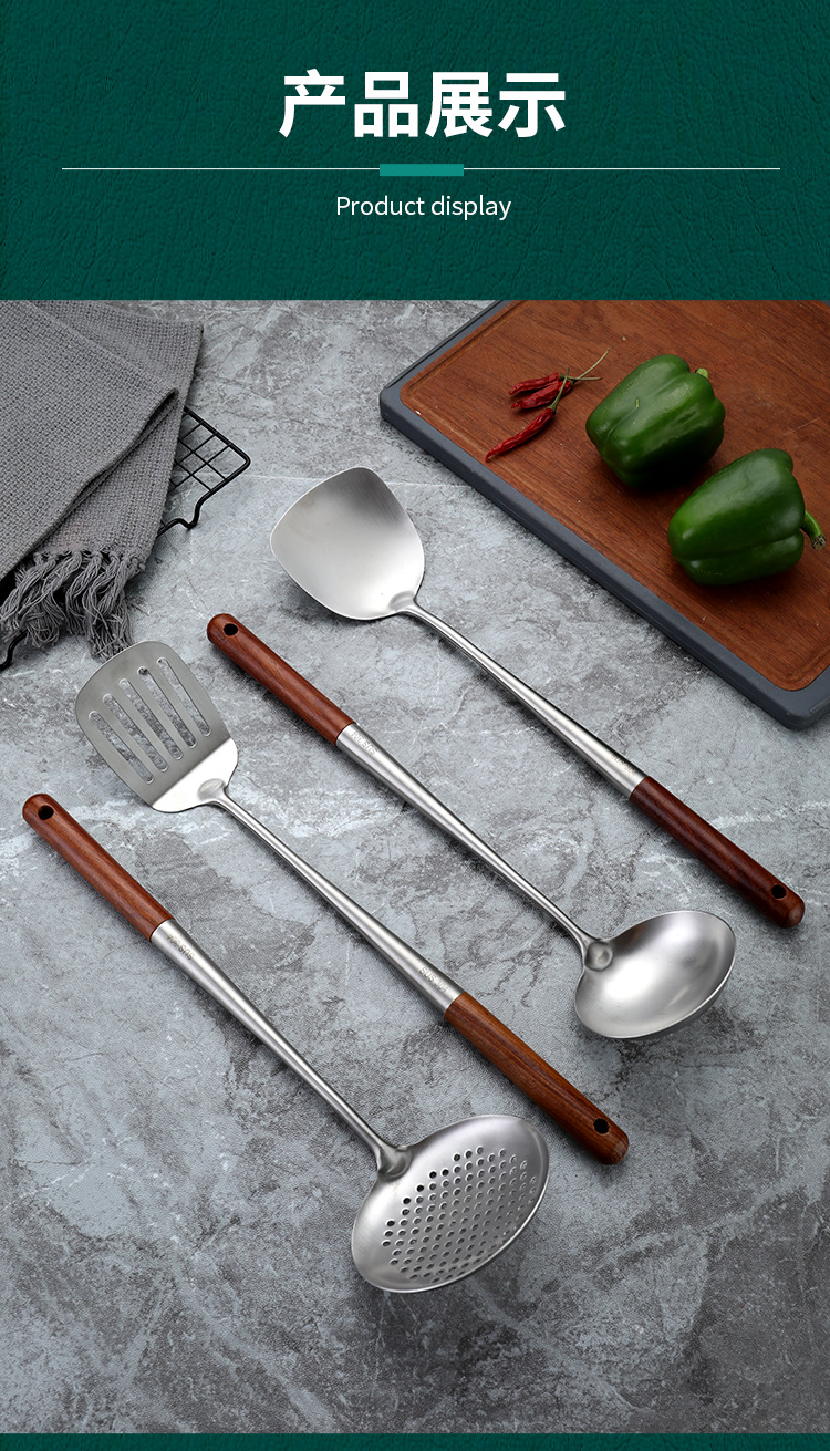 304 스테인레스 스틸 볶음 삽 볶음 스푼 확장 로즈우드 화상 방지 손잡이 볶음 삽 숟가락 숟가락 가정 주방 용품 세트스토어 가기