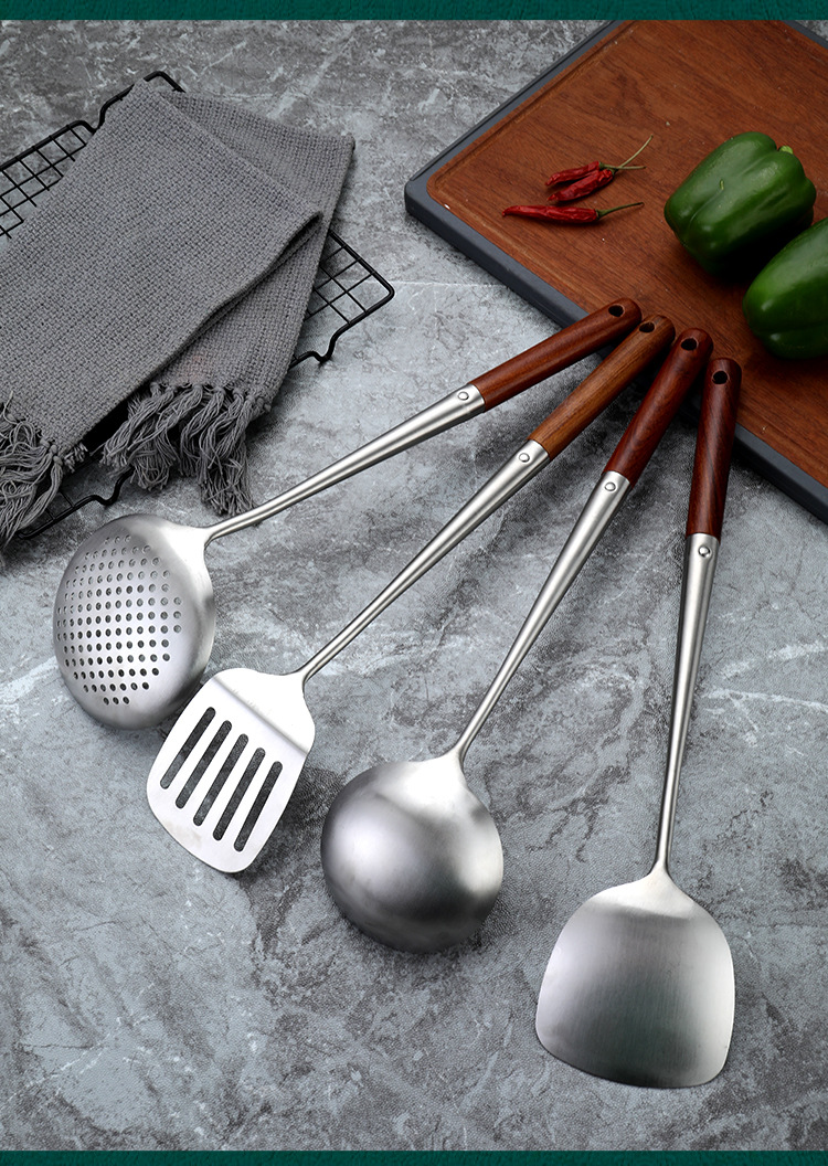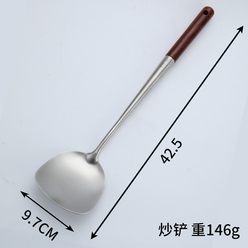 304 스테인레스 스틸 볶음 삽 볶음 스푼 확장 로즈우드 화상 방지 손잡이 볶음 삽 숟가락 숟가락 가정 주방 용품 세트