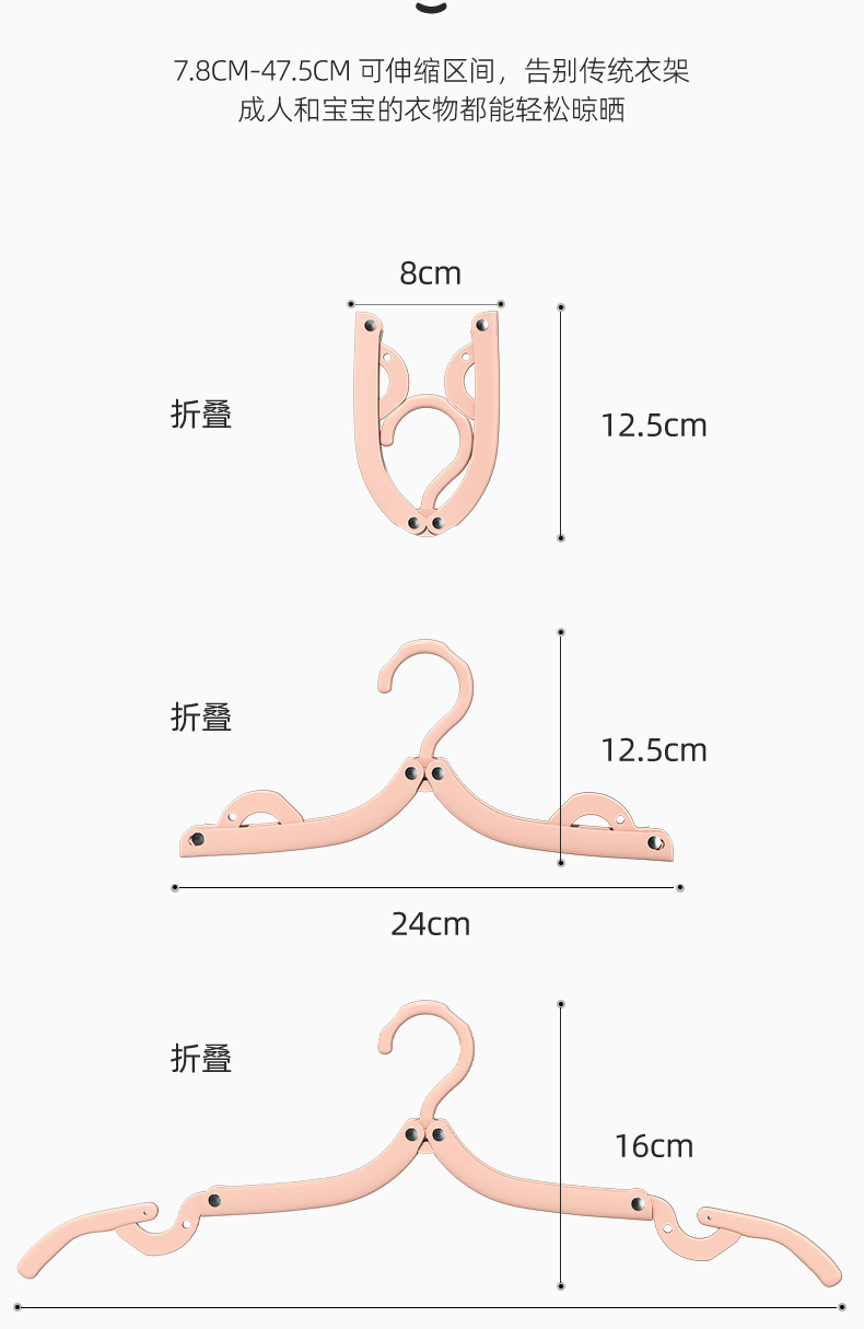 휴대용 접이식 옷걸이 여행 매직 행거 공간 절약형 단색 미끄럼 방지 다기능 미니 옷걸이스토어 가기
