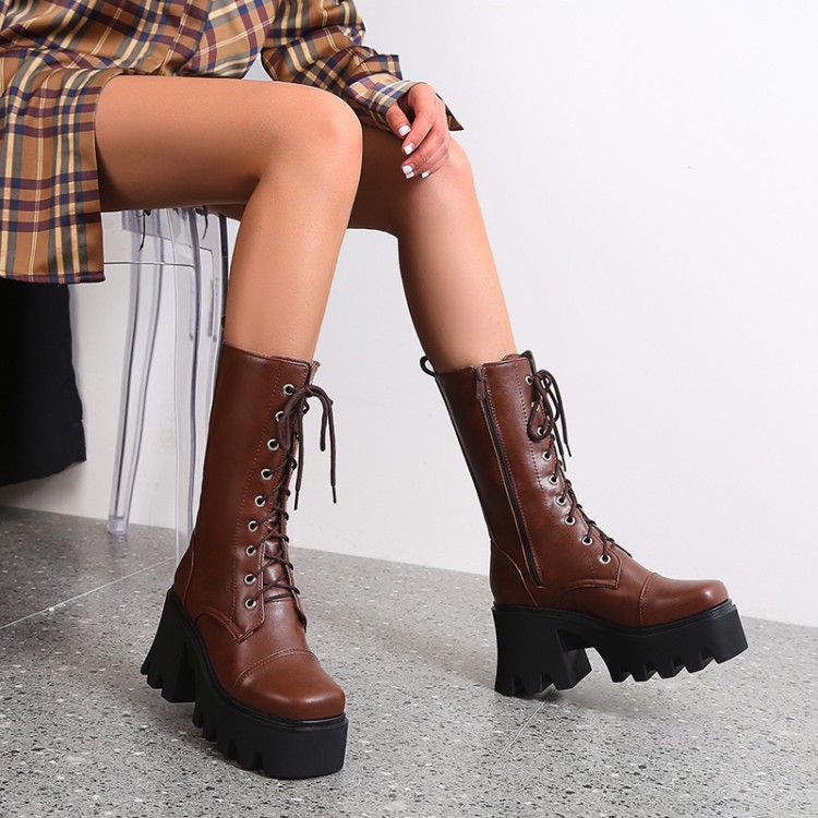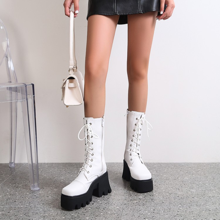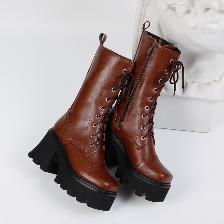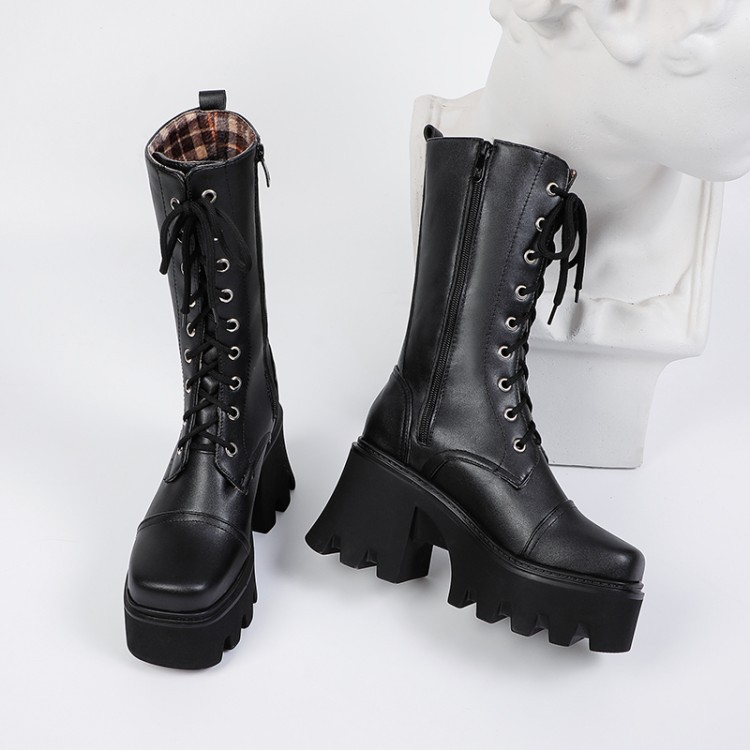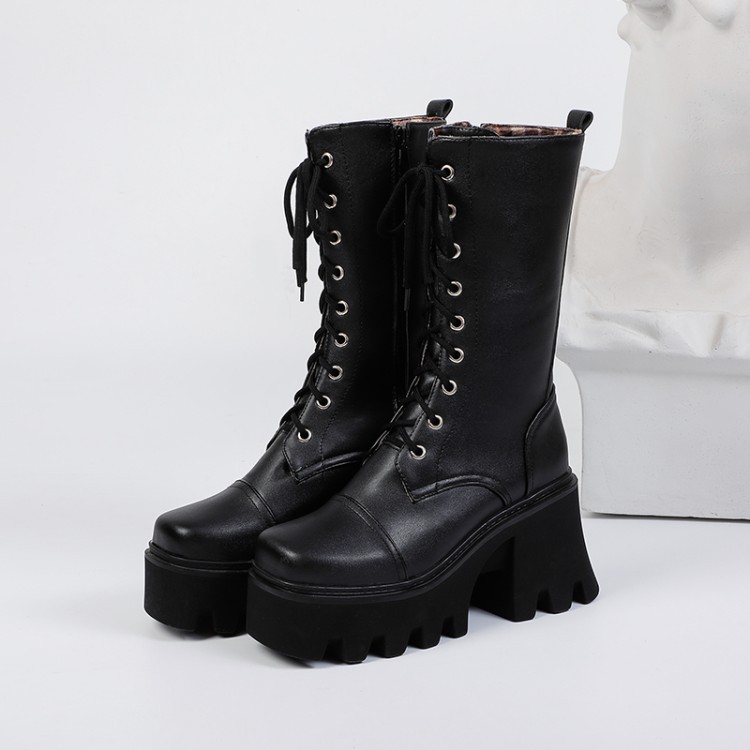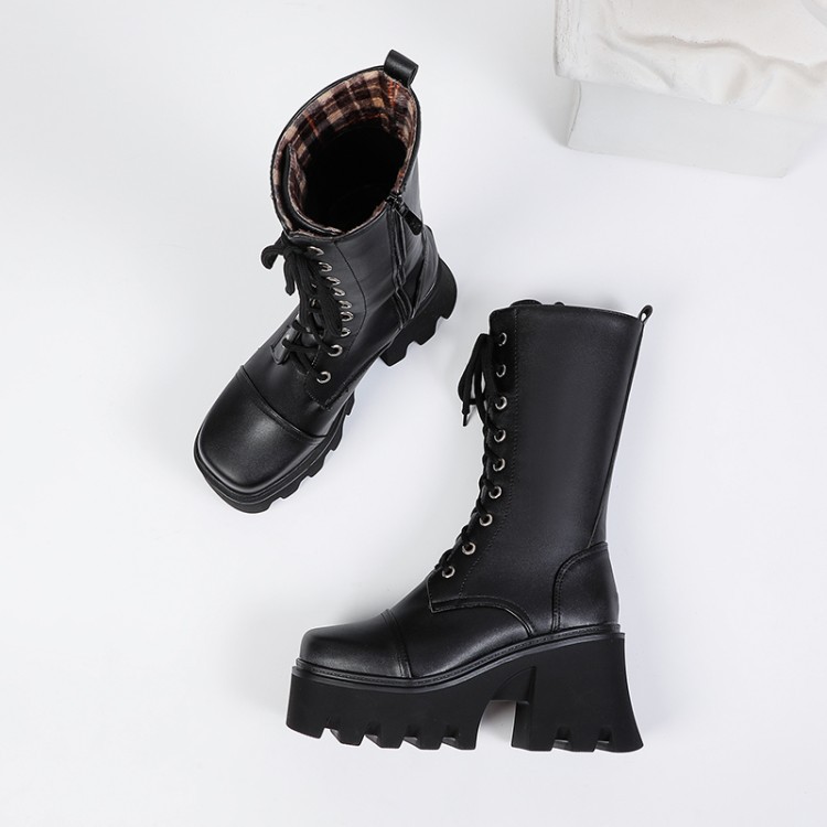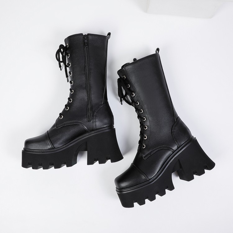 하이힐 방수 플랫폼 숏부츠 대형 사이즈 40-43 마틴 끈부츠 여성용스토어 가기