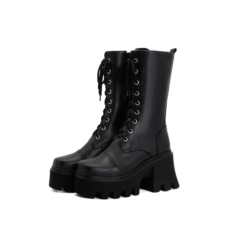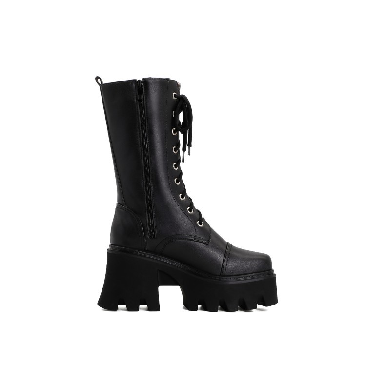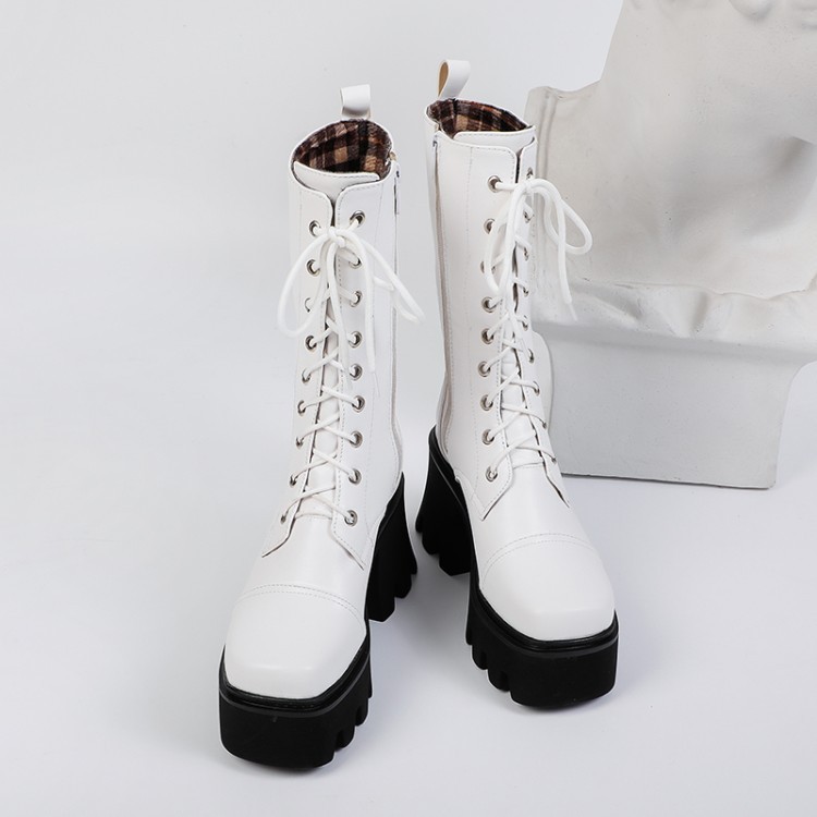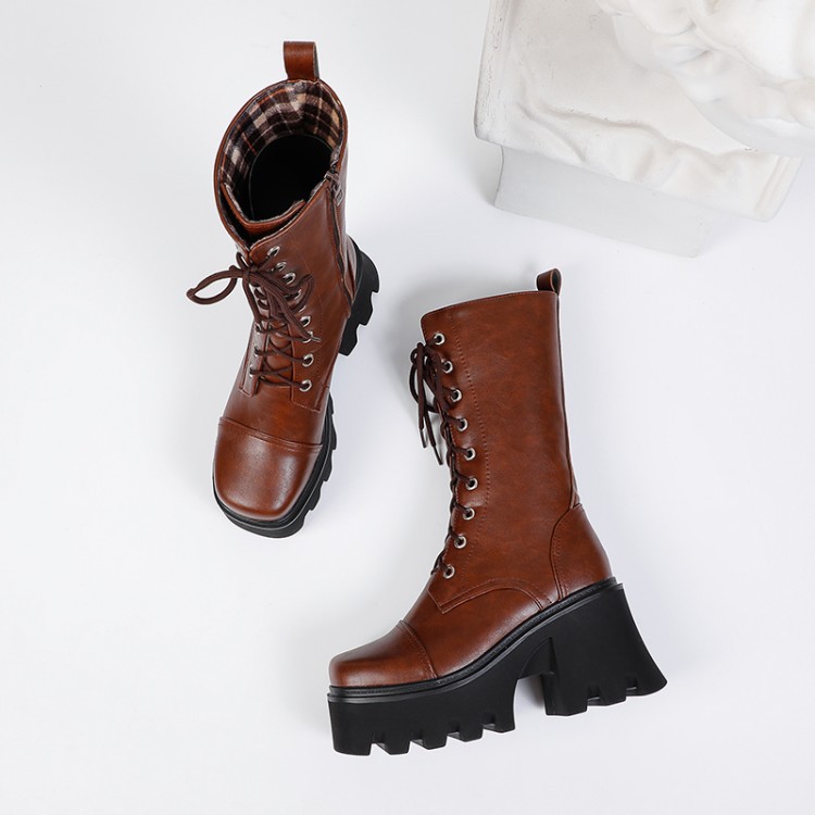 하이힐 방수 플랫폼 숏부츠 대형 사이즈 40-43 마틴 끈부츠 여성용