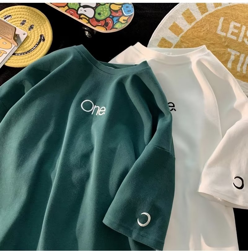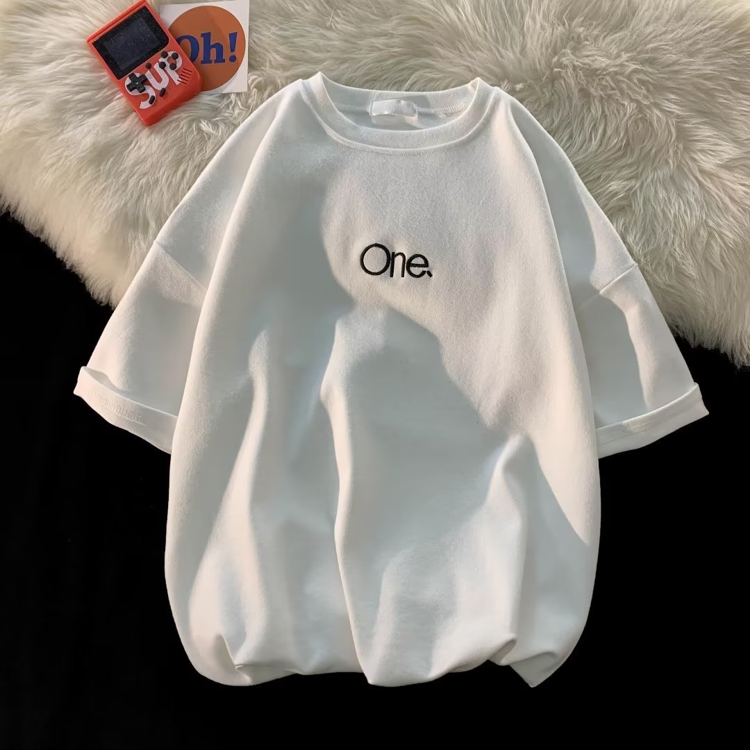 반팔 티셔츠 여름 남성용 루즈한 반팔 아메리칸 캐주얼 자수 커플 여름 모든 경기 학생 헤비 탑스토어 가기