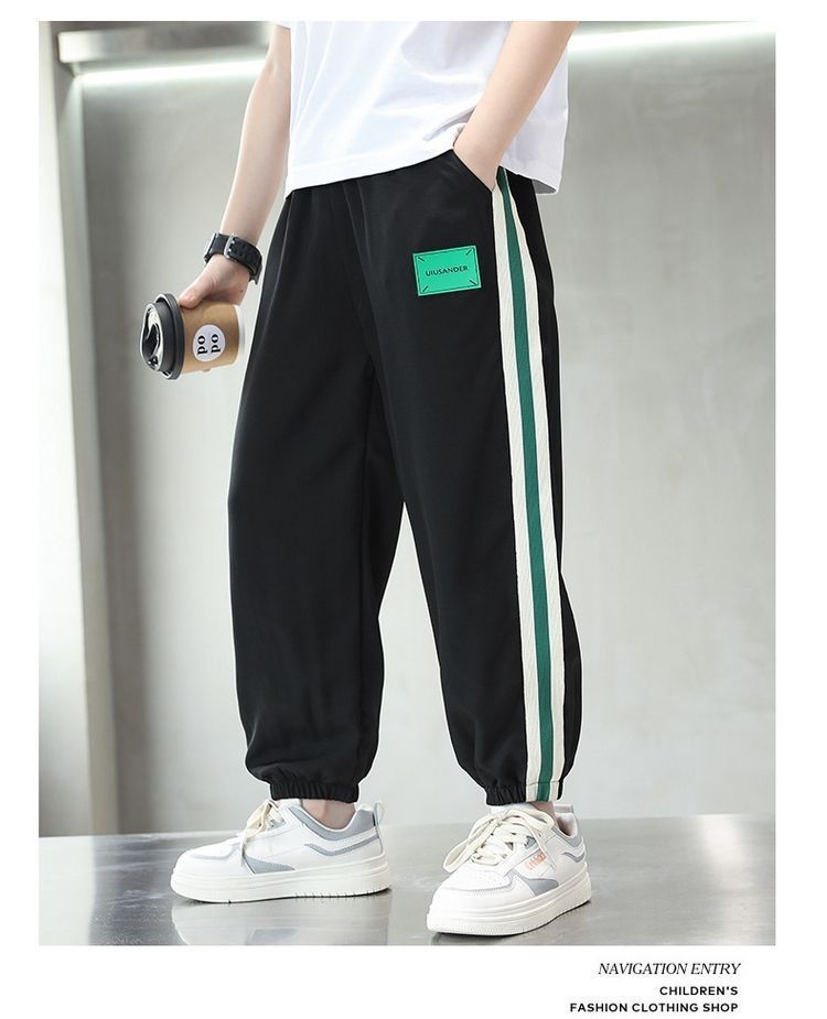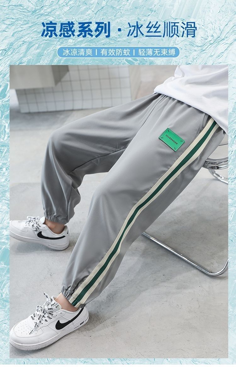여름 소년 바지 2023 새로운 어린이 아이스 실크 모기 방지 바지 큰 어린이 얇은 속건 바지 캐주얼 스포츠 바지스토어 가기
