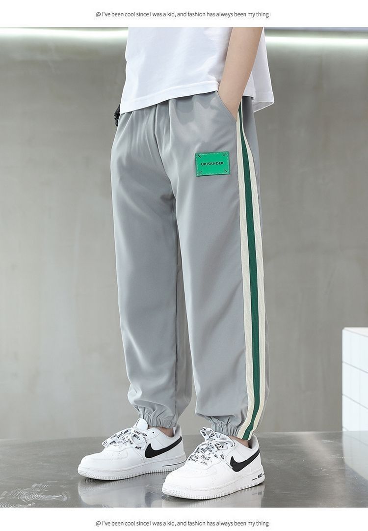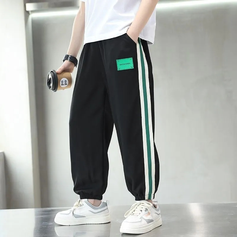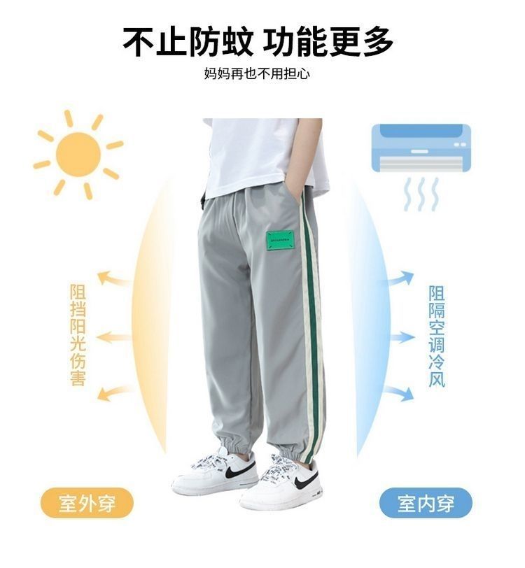 여름 소년 바지 2023 새로운 어린이 아이스 실크 모기 방지 바지 큰 어린이 얇은 속건 바지 캐주얼 스포츠 바지