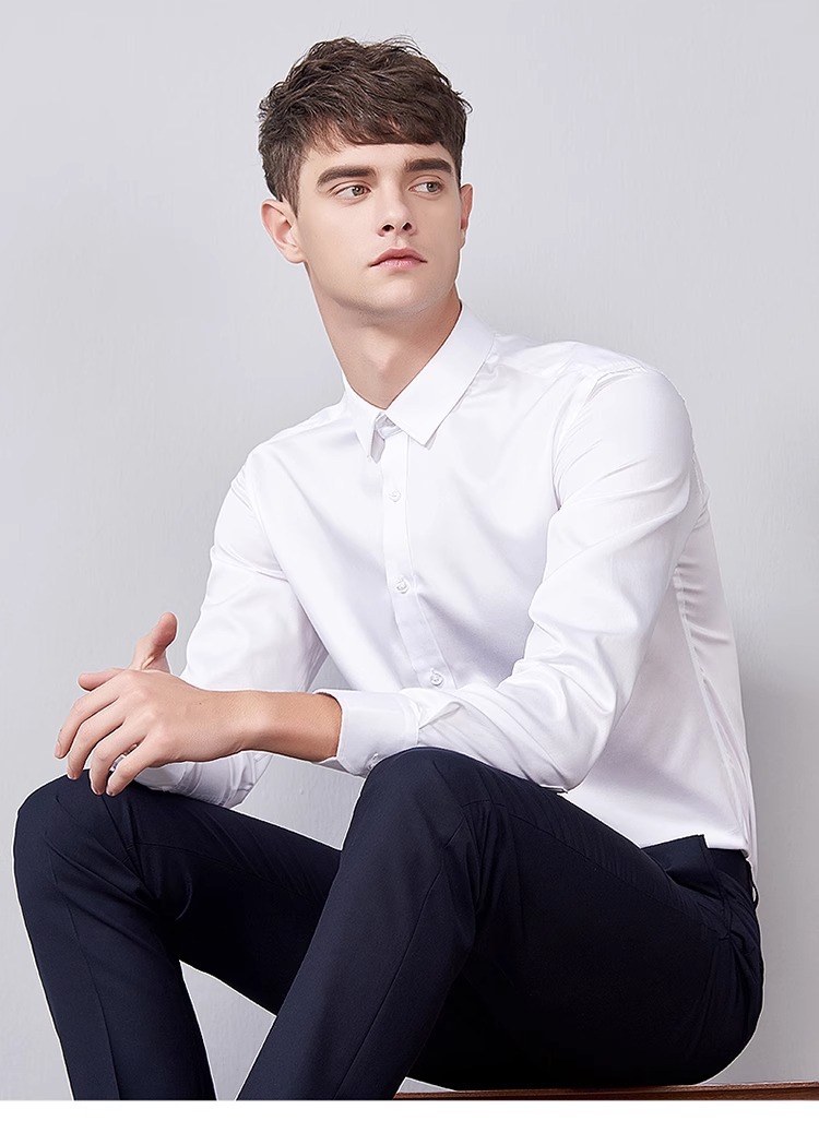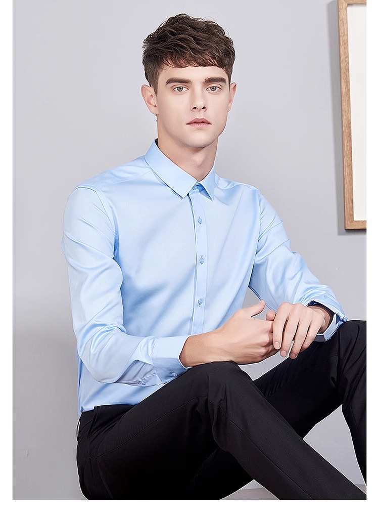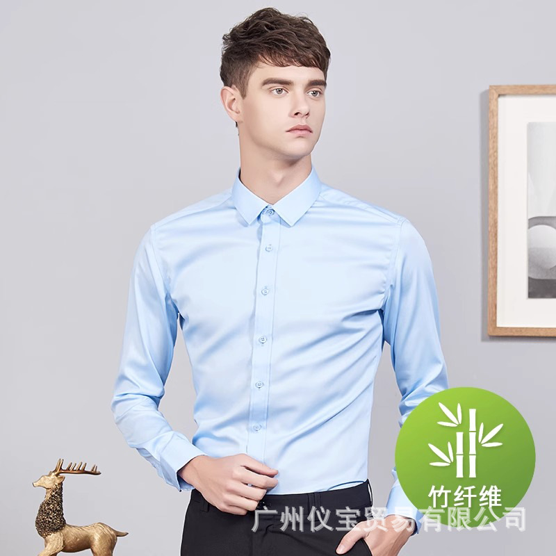 대나무 섬유 남자의 셔츠 긴 소매 가을 탄성 비즈니스 셔츠 비 다림질 인치 셔츠 탄성 원피스 작업복 전문스토어 가기