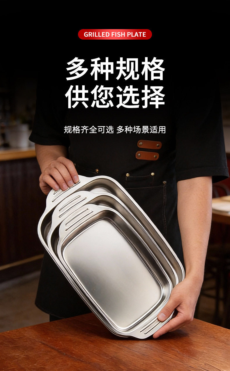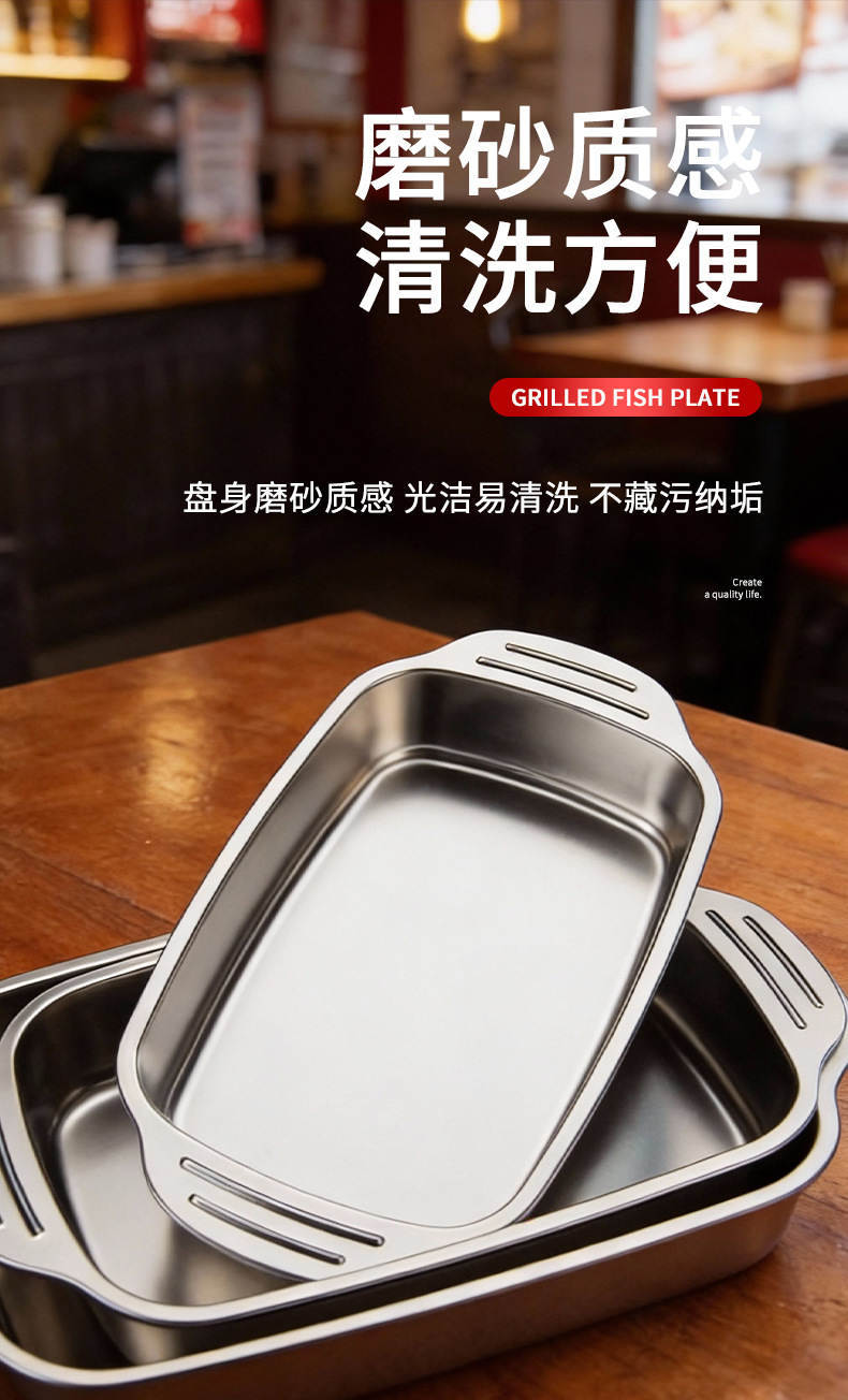 생선 구이 접시 스테인레스 스틸 트레이 디너 접시 상업용 스테인레스 스틸 사각 접시 준비 접시 트레이 직사각형 접시 높은 외관스토어 가기