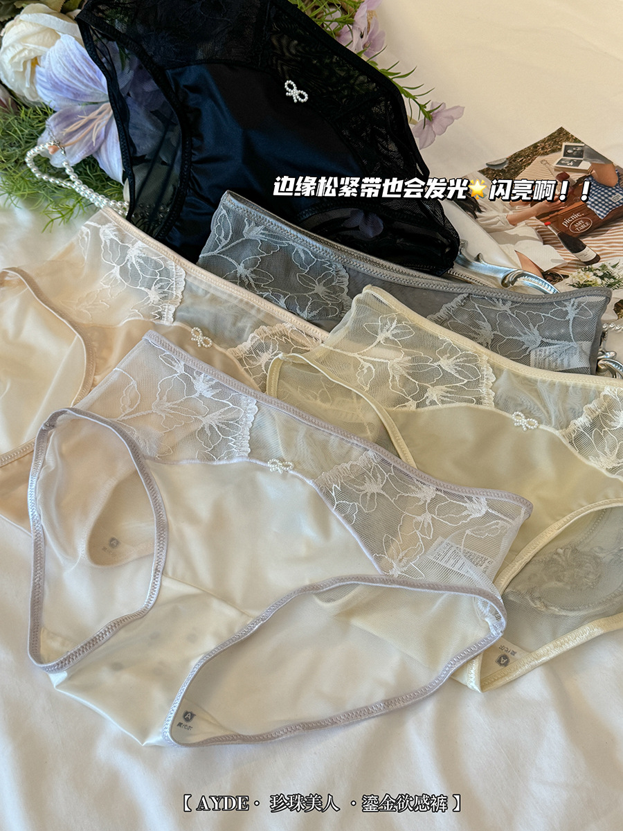 일본식 초박형 아이스 실크 레이스 속옷 여성용 알몸 느낌 중간 허리 슈퍼 탄성 엉덩이 리프팅 뽕나무 실크 바닥 소녀의 팬티스토어 가기