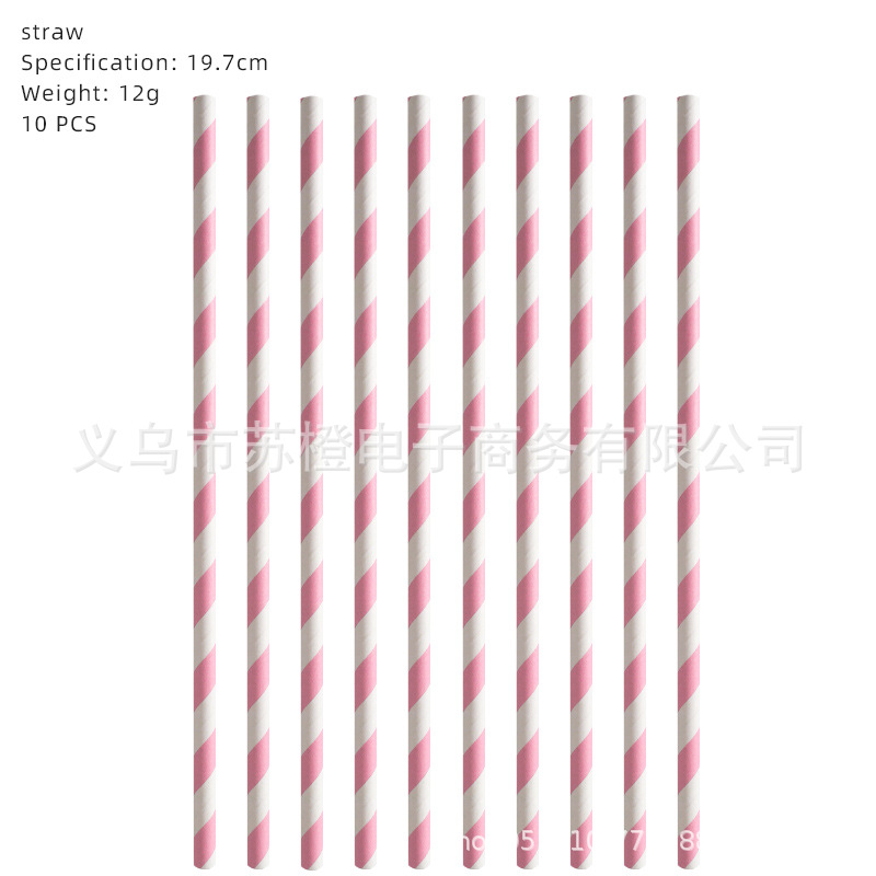 • 핑크 줄무늬 빨대 10PC
