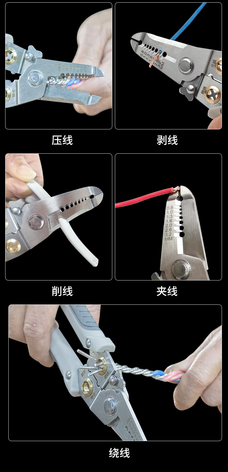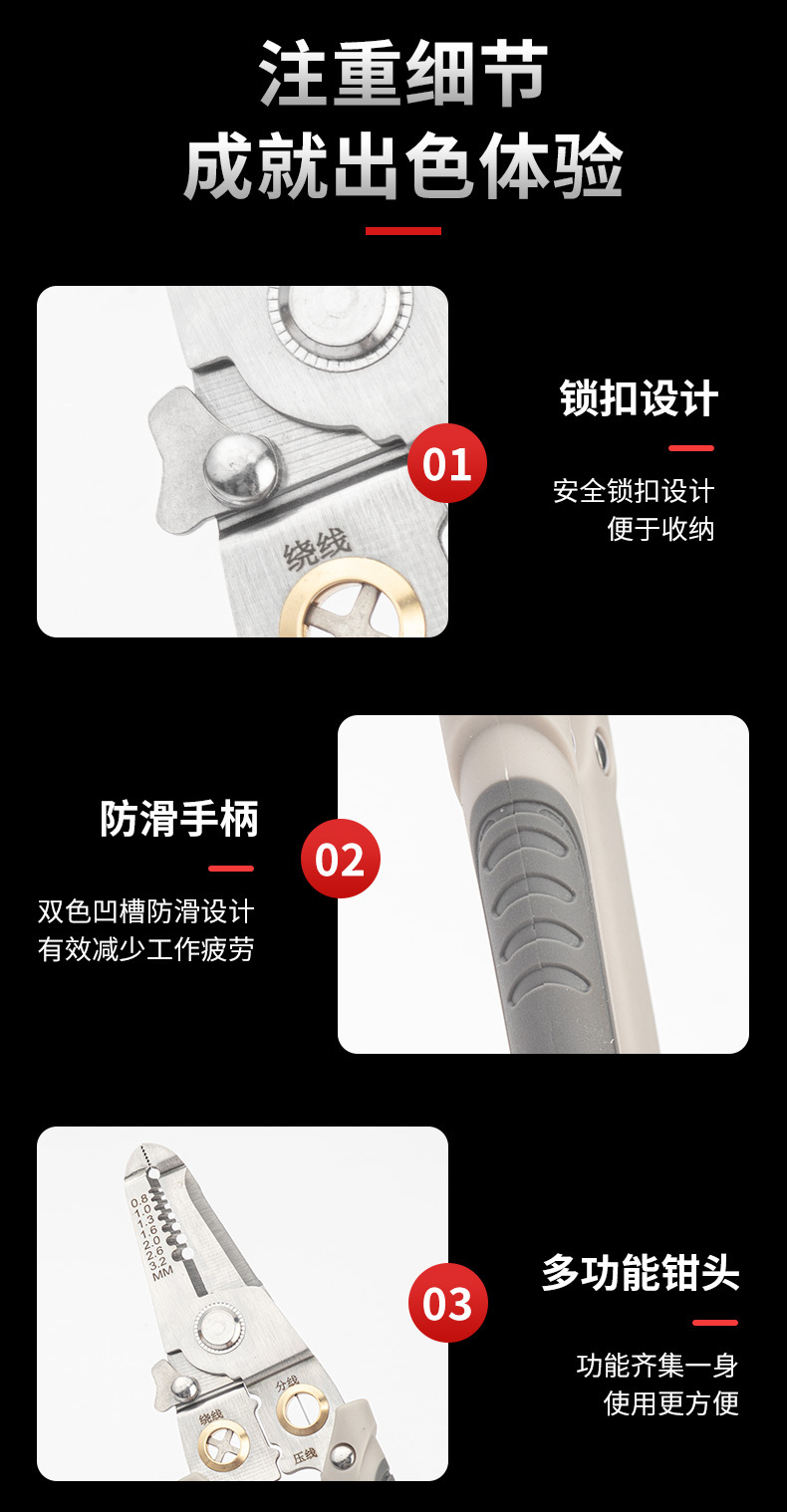 도매 산업용 등급 스테인레스 스틸 와이어 스트리핑 펜치 수동 와이어 압착 및 스트리핑 다기능 전기 펜치 와이어 커터스토어 가기