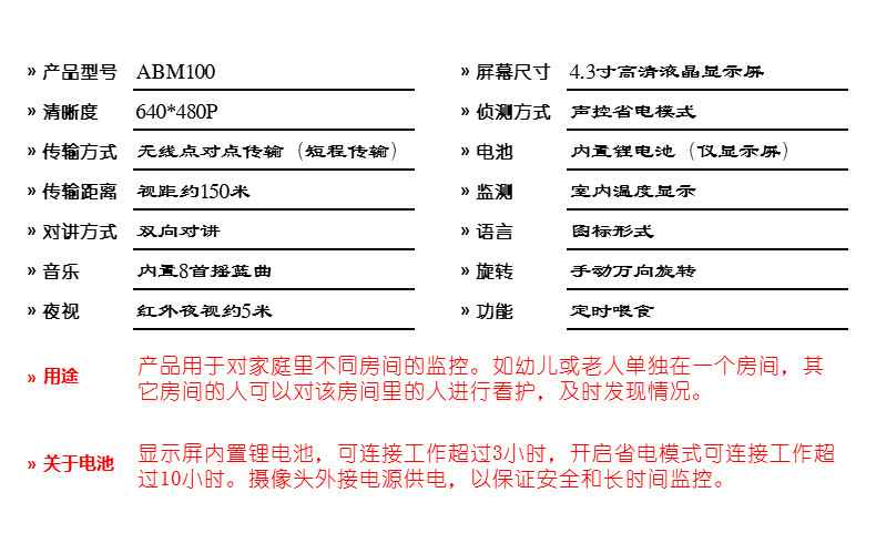 • ABM100 베이비 모니터 [미국 전원 공급 장치]