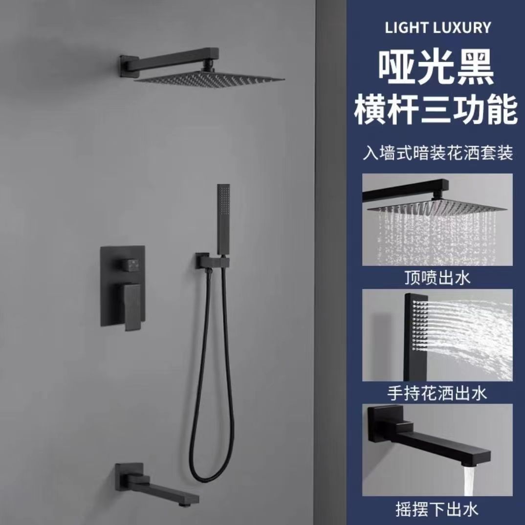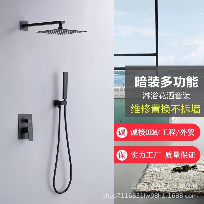 크로스 보더 블랙 모든 구리 은폐 샤워 세트 임베디드 호텔 엔지니어링 욕실 임베디드 샤워 아마존