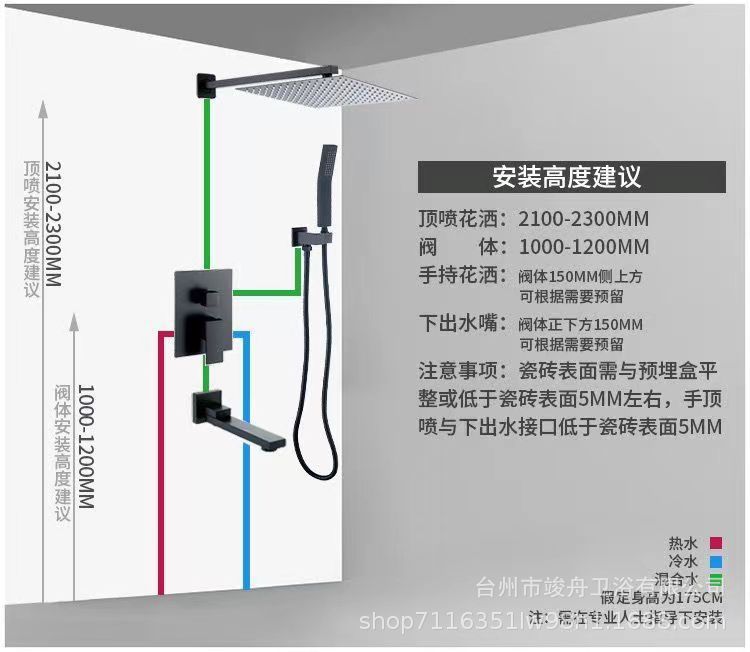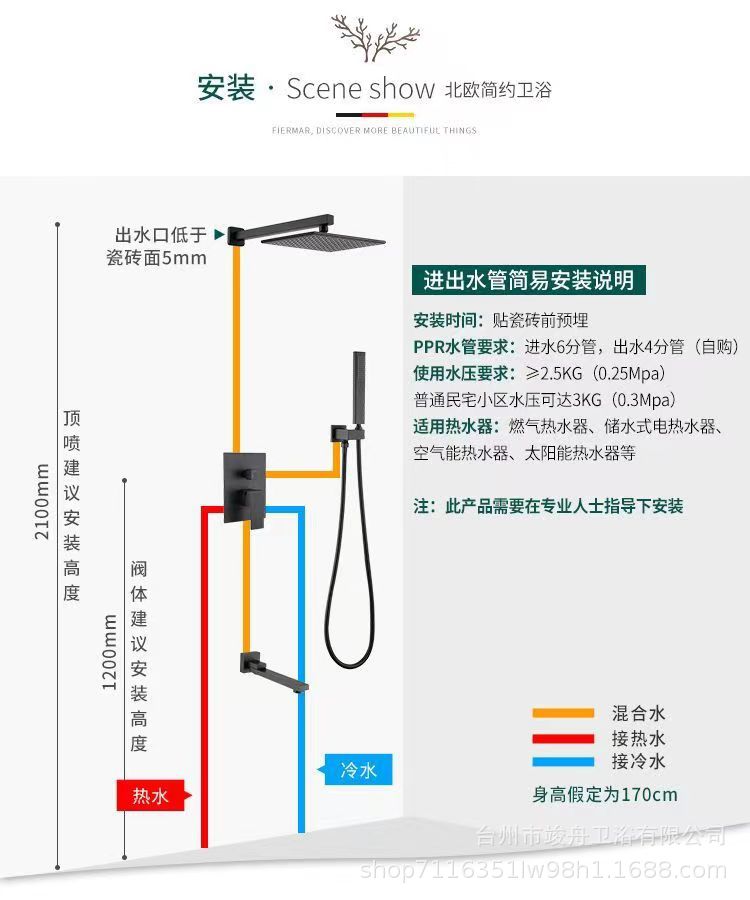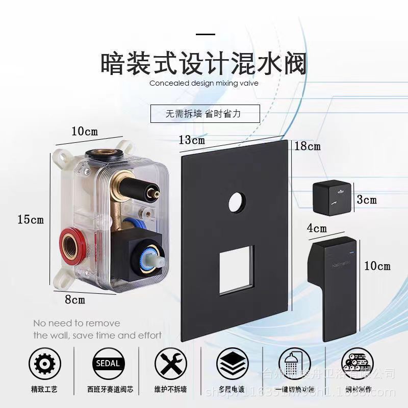 크로스 보더 블랙 모든 구리 은폐 샤워 세트 임베디드 호텔 엔지니어링 욕실 임베디드 샤워 아마존스토어 가기
