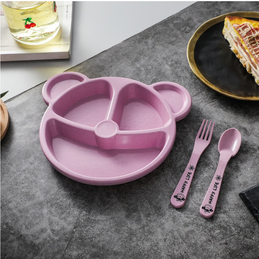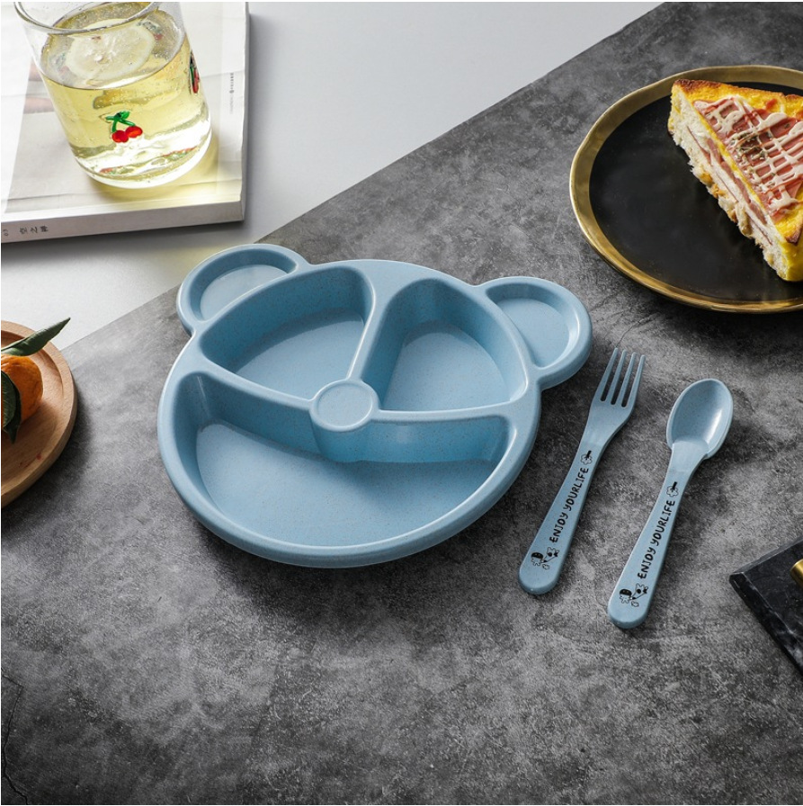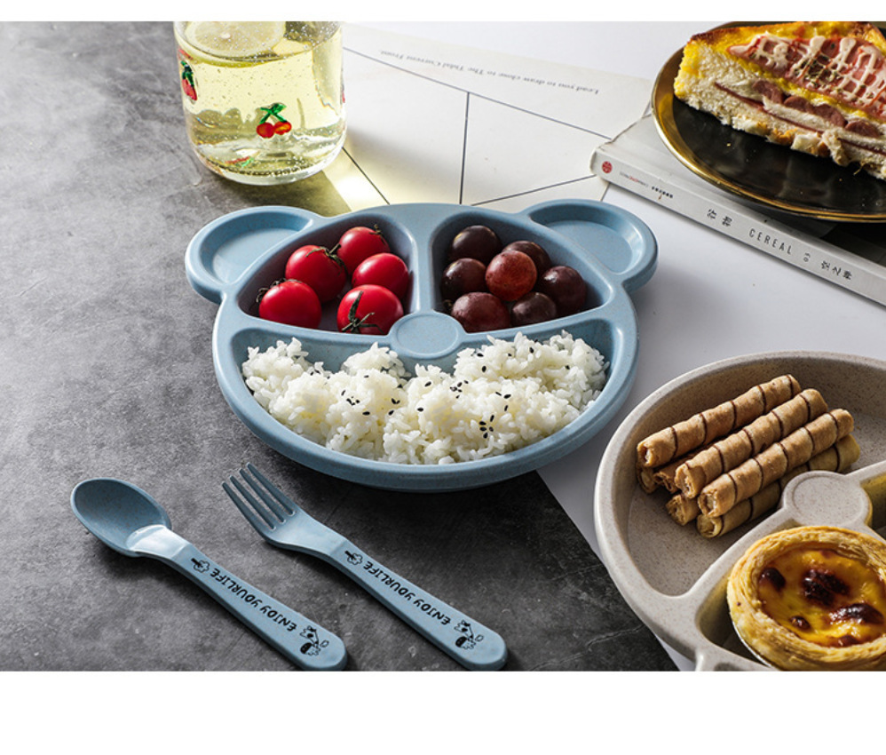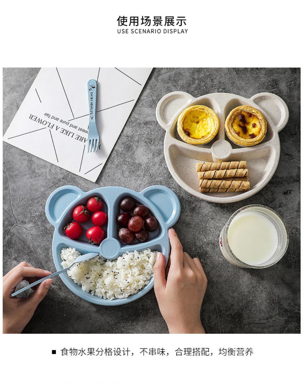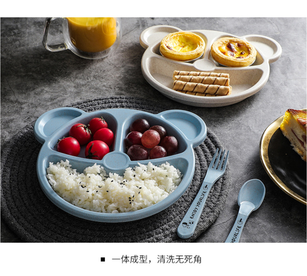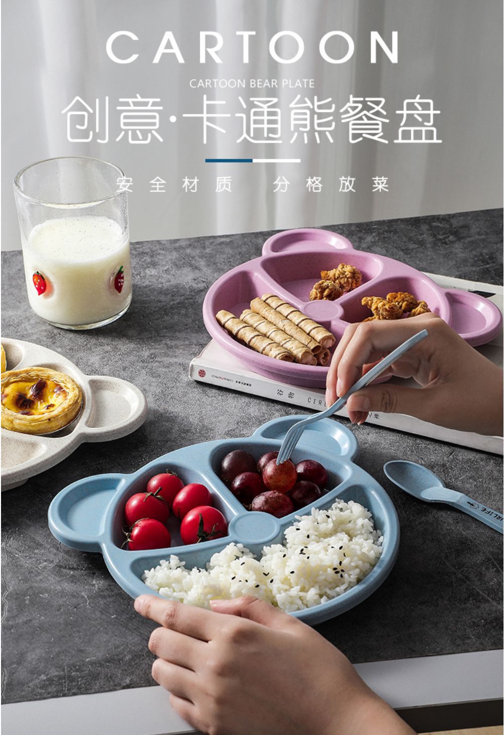 크리 에이 티브 만화 밀 구획 곰 어린이 접시 아기 구획 접시 아침 접시 포크 스푼 보완 식품 접시