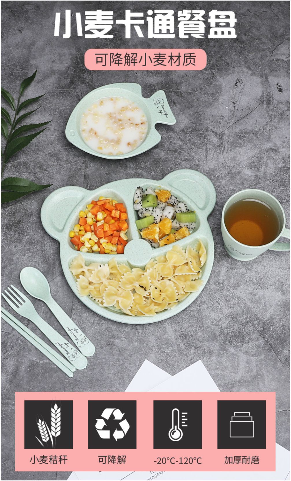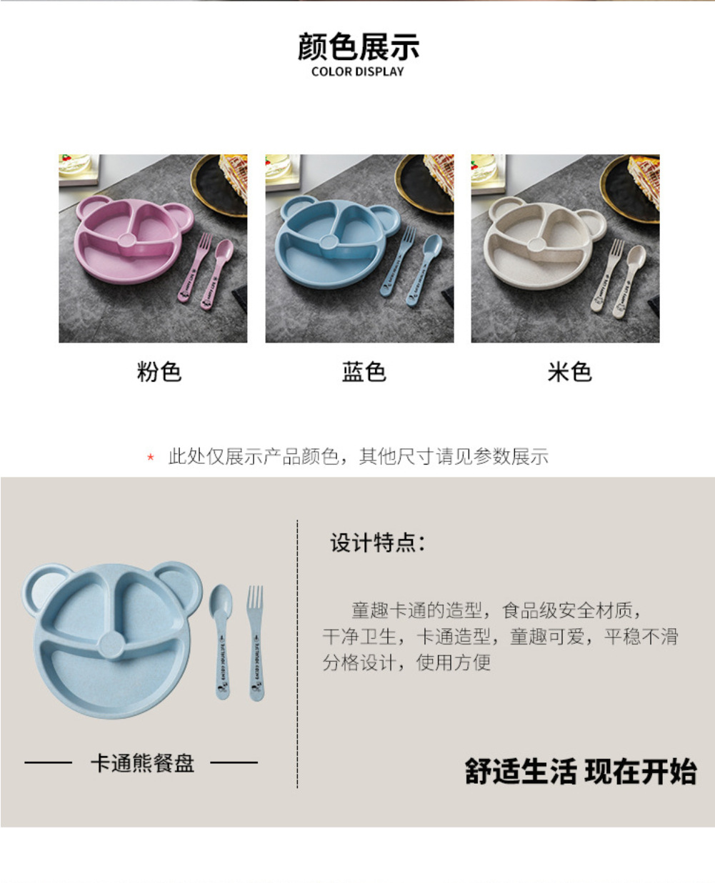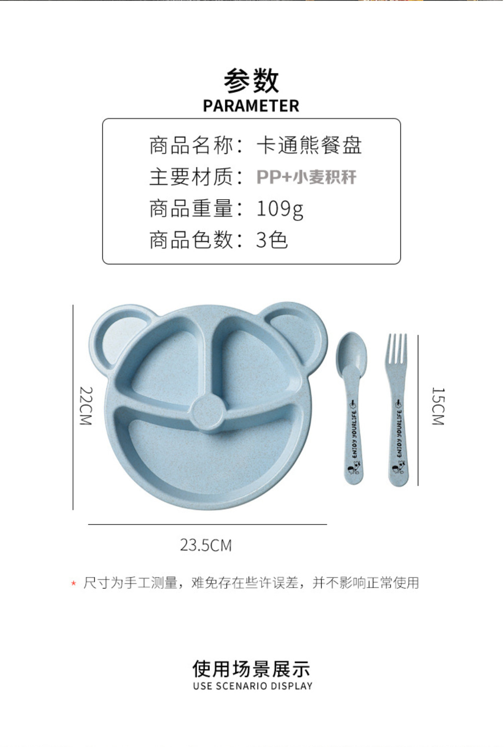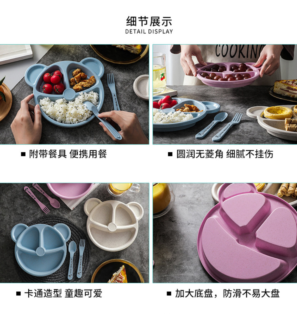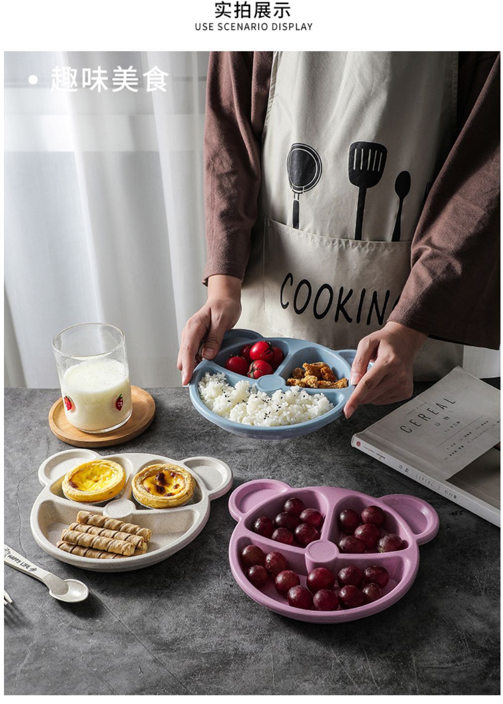 크리 에이 티브 만화 밀 구획 곰 어린이 접시 아기 구획 접시 아침 접시 포크 스푼 보완 식품 접시