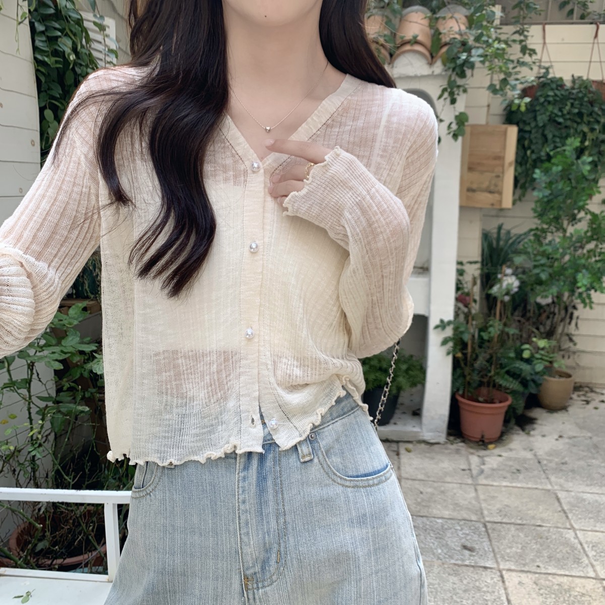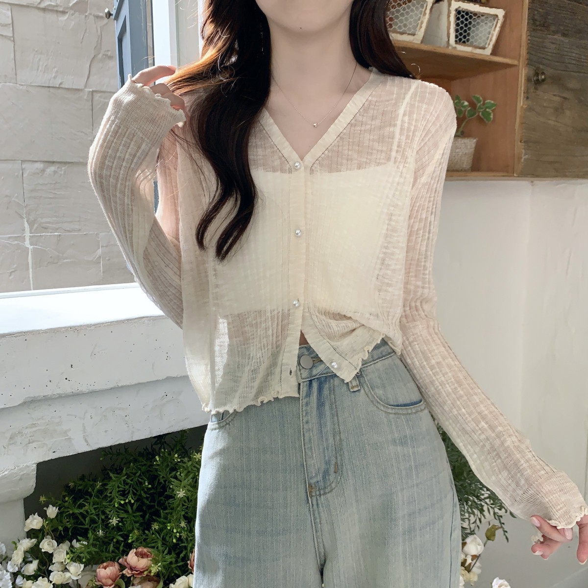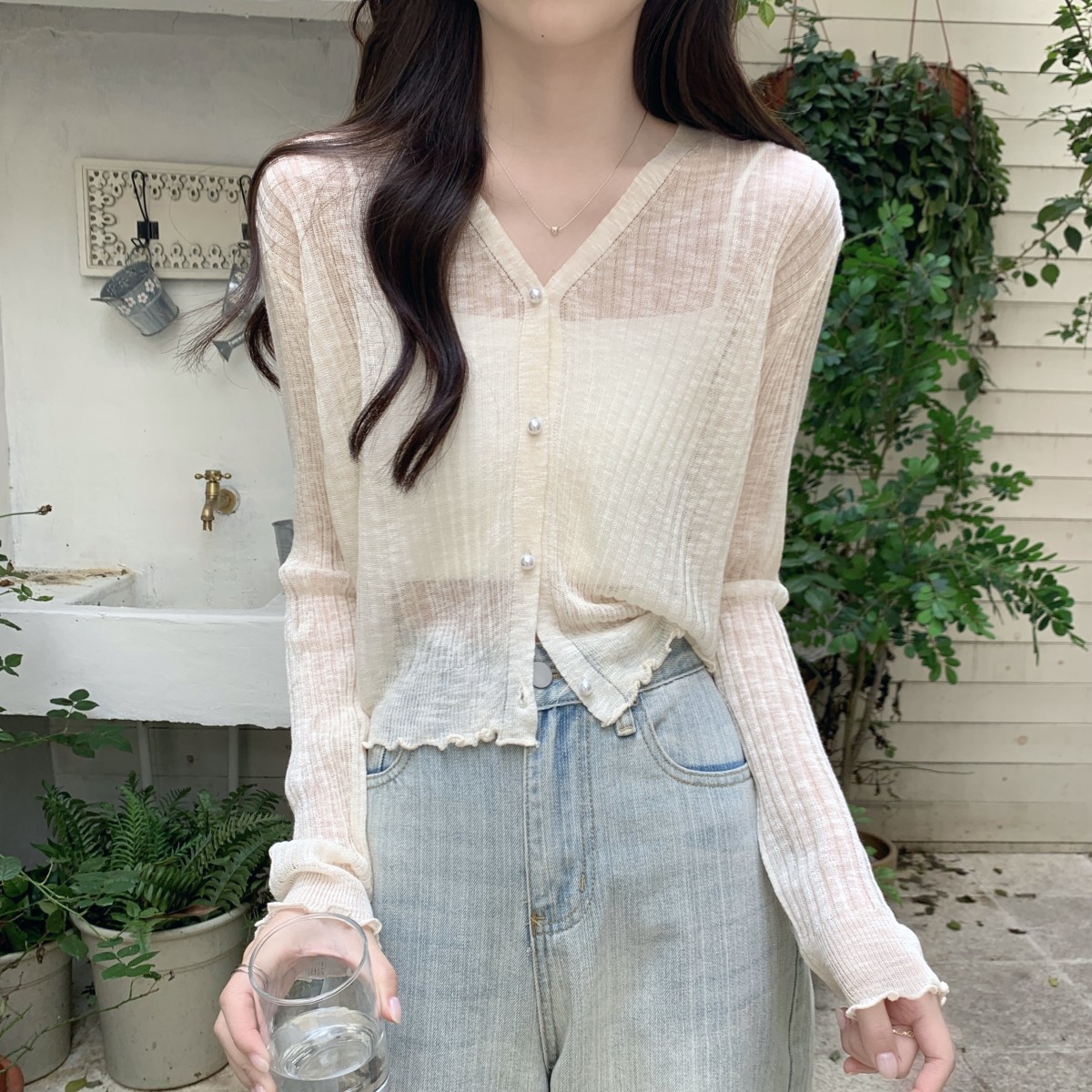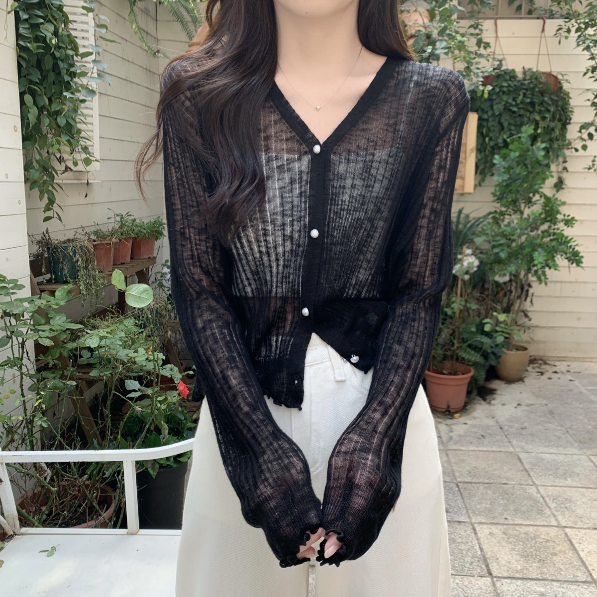 2025 여름 자외선 차단 가디건 여성용 얇은 루즈핏 러플 숄 숏 스타일 학생 니트 아이스 실크 셔츠스토어 가기