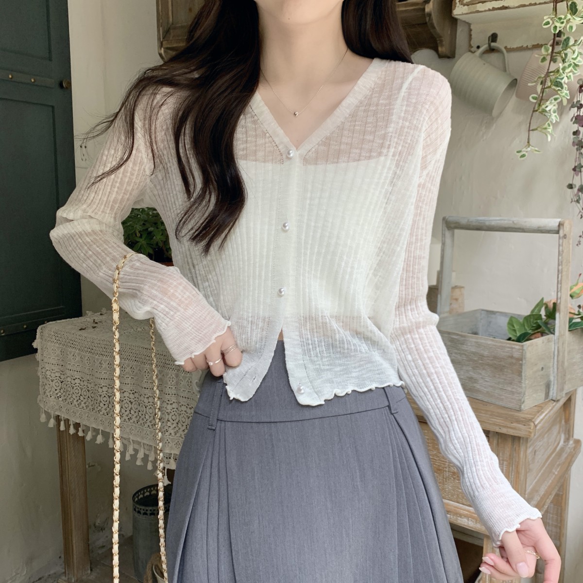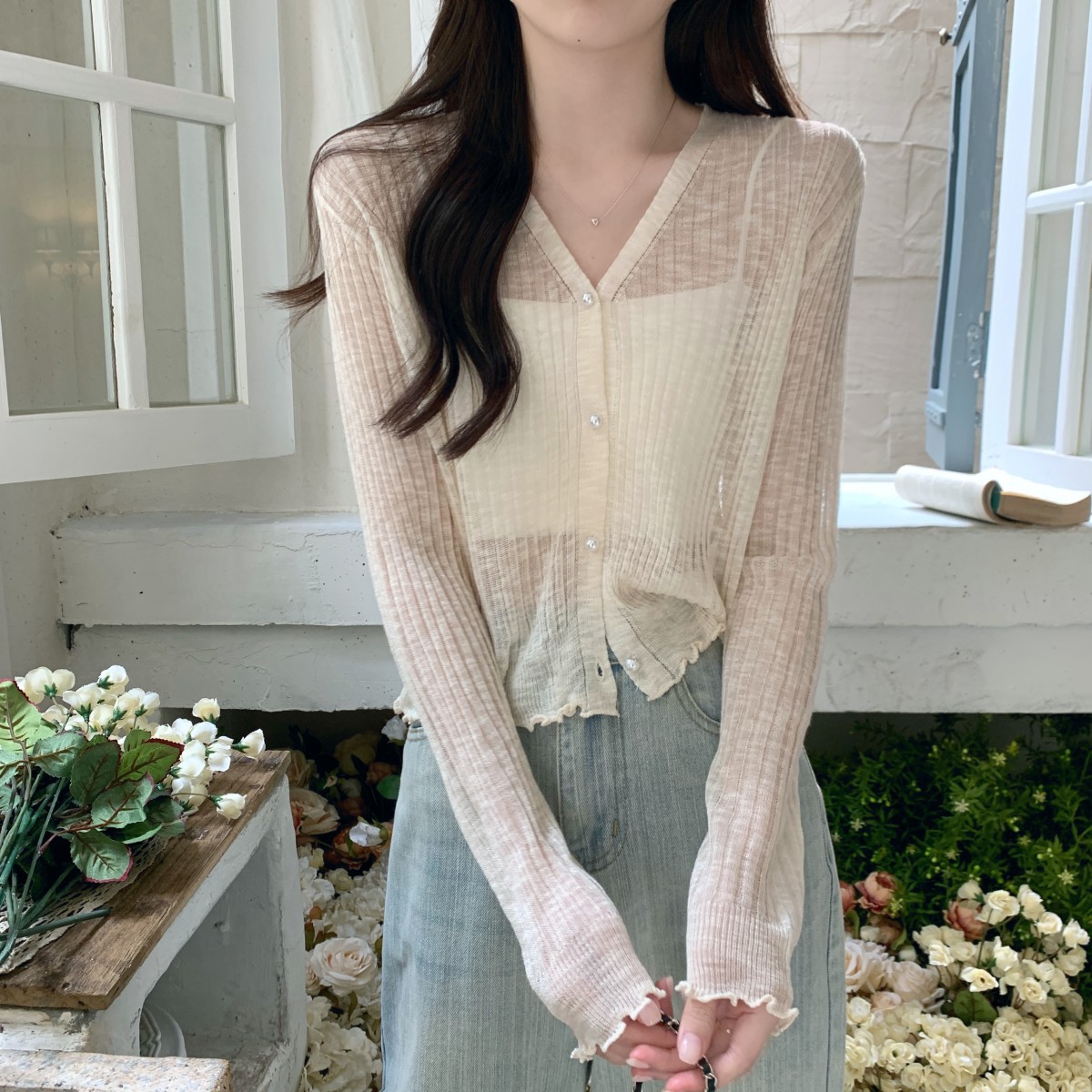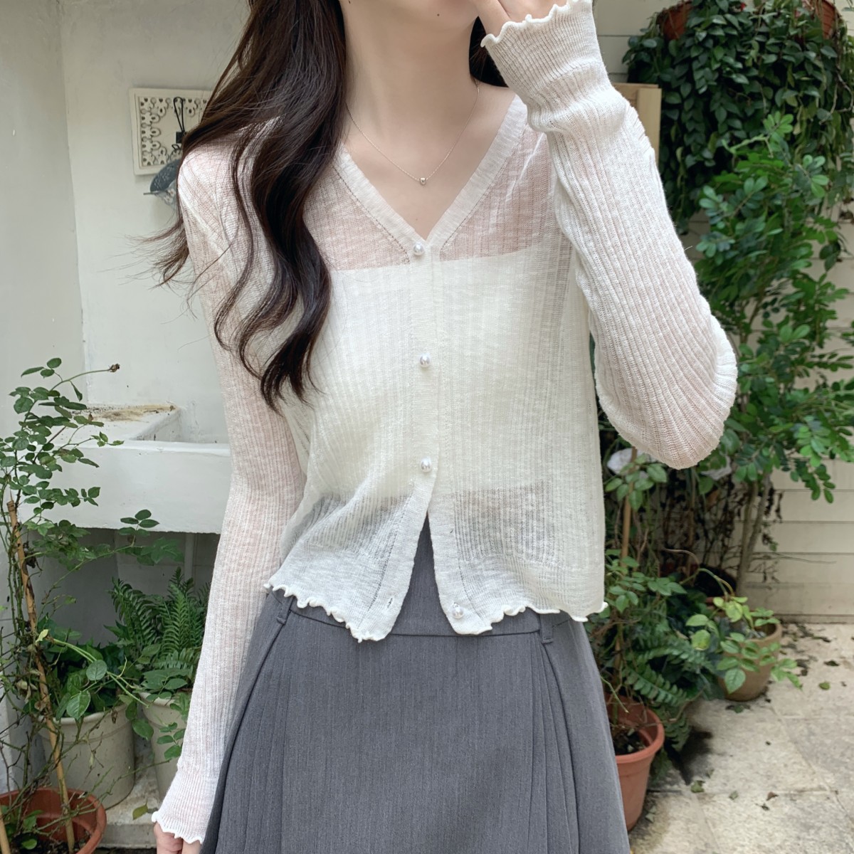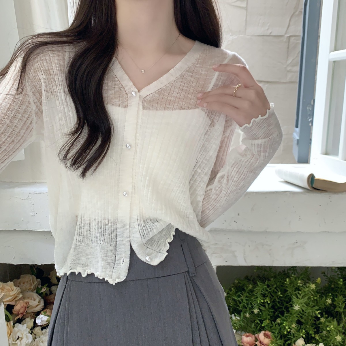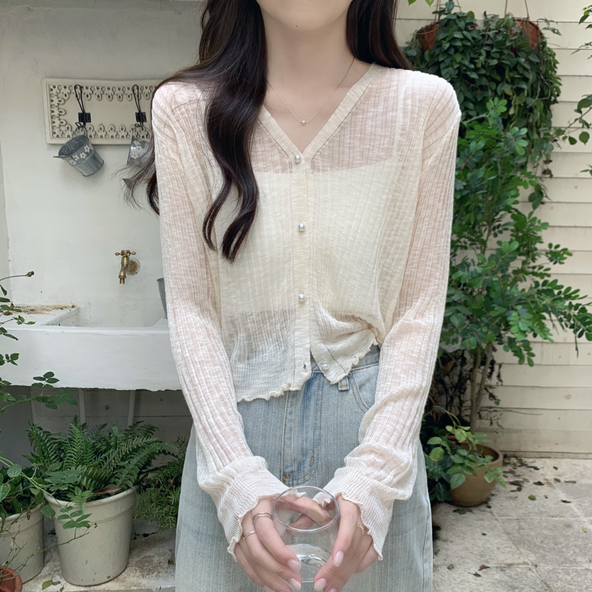 2025 여름 자외선 차단 가디건 여성용 얇은 루즈핏 러플 숄 숏 스타일 학생 니트 아이스 실크 셔츠스토어 가기