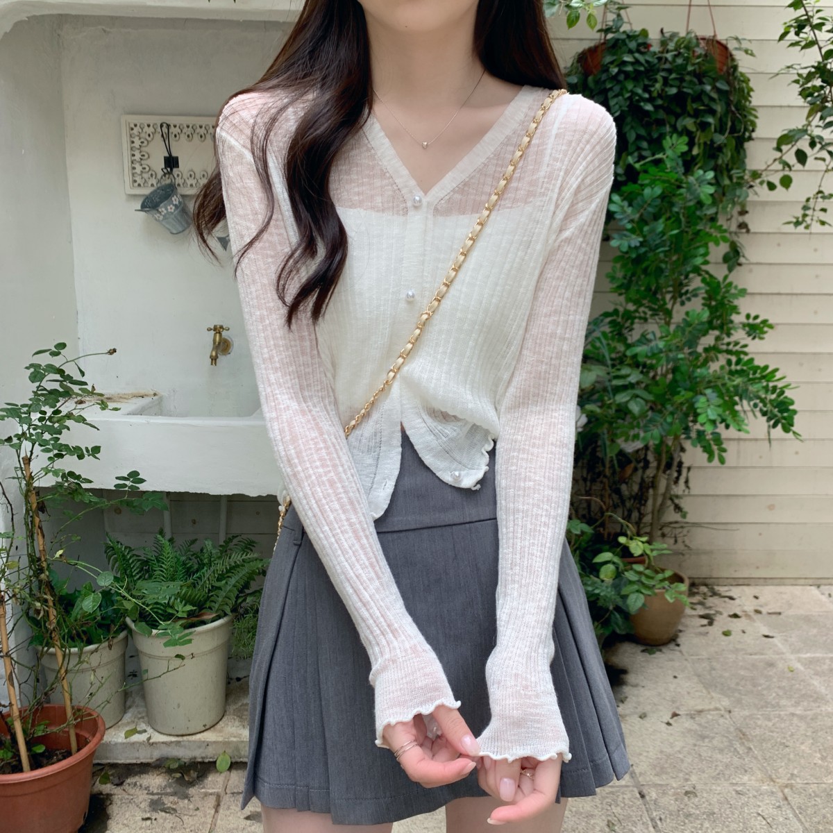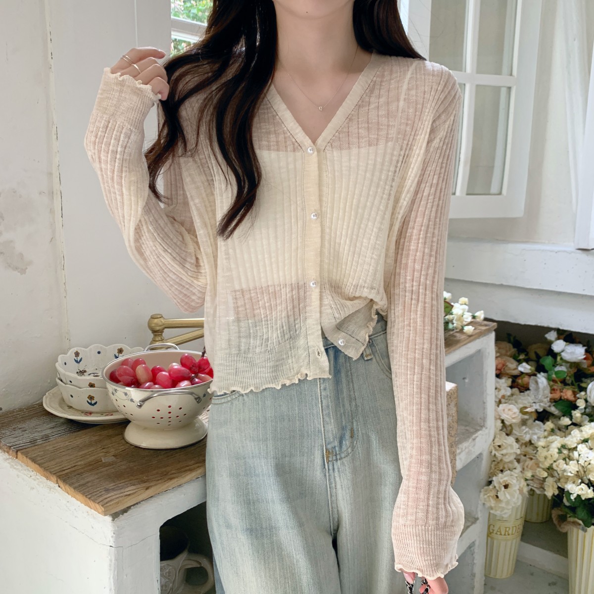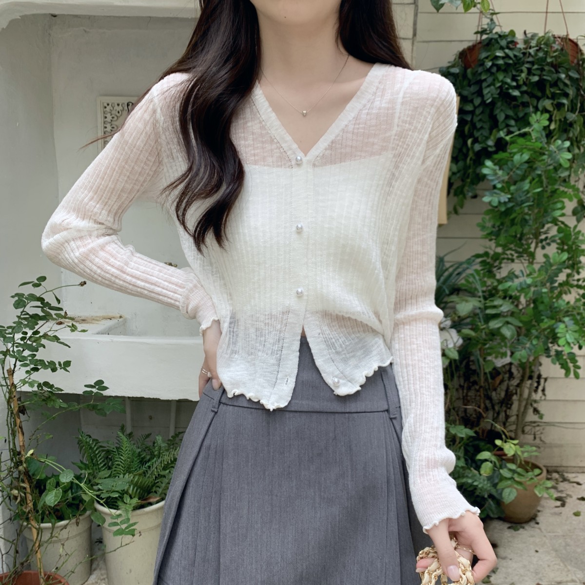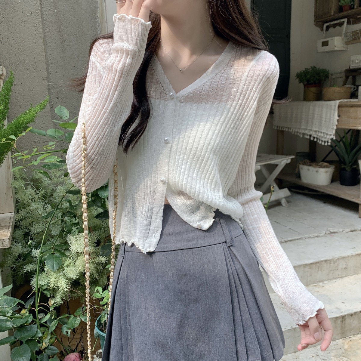 2025 여름 자외선 차단 가디건 여성용 얇은 루즈핏 러플 숄 숏 스타일 학생 니트 아이스 실크 셔츠스토어 가기