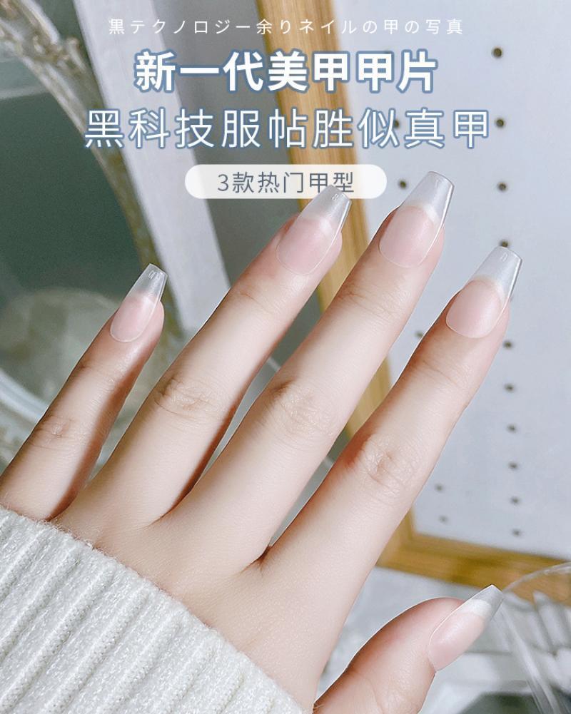 초박형 심리스 양면 젖빛 착용 네일 아트 네일 아트 네일 아트 샵 수제 가짜 네일 패치