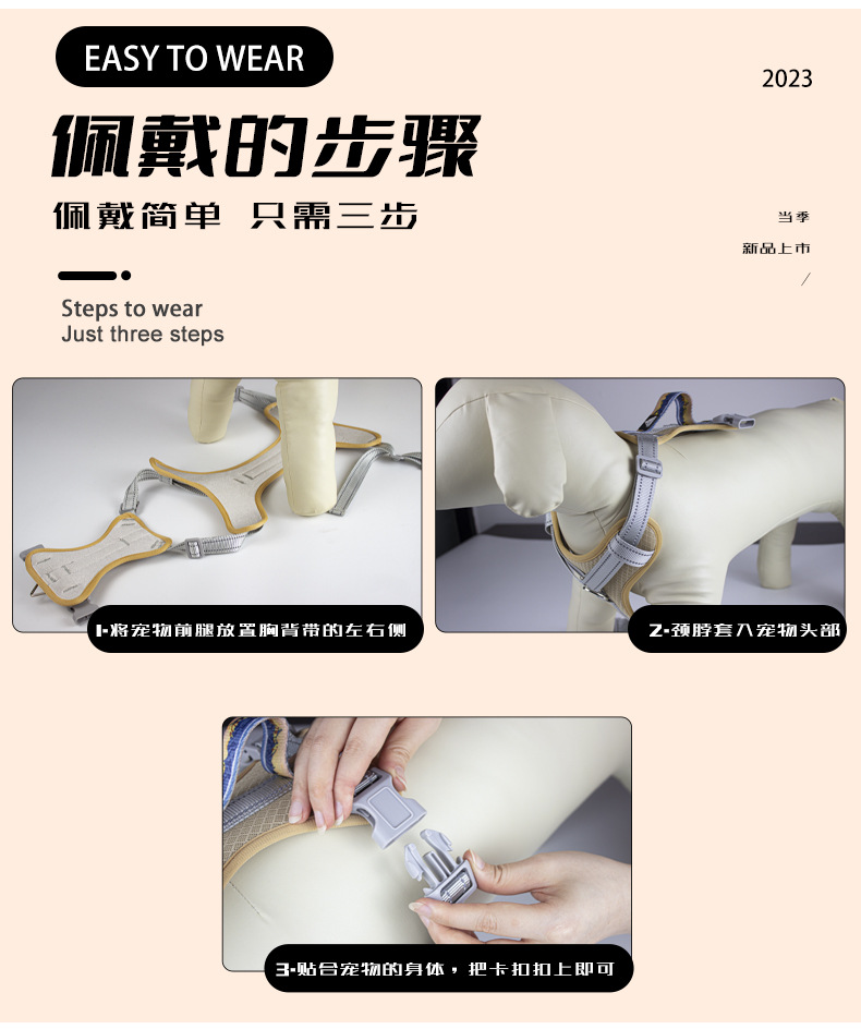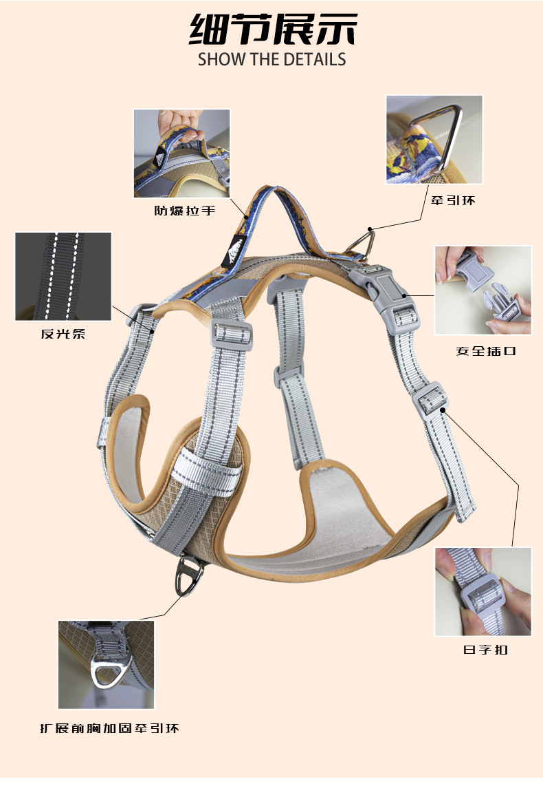 注:图片中模特照牵引绳仅供展示,产品实际不包含牵引绳。