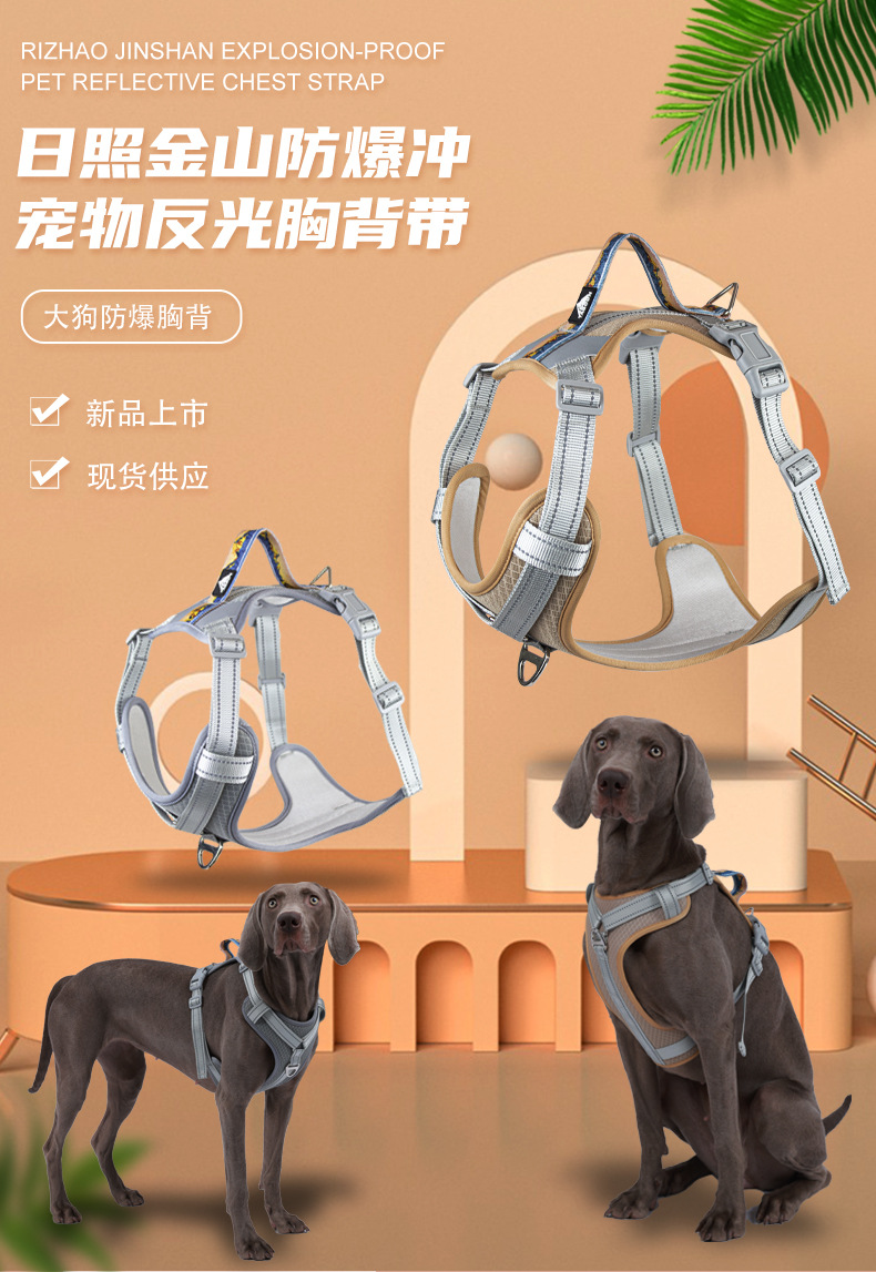 국경 새로운 애완 동물 가슴 스트랩 폭발 방지 큰 개 스트랩 반사 조절 개 가죽 끈 개 가죽 끈 도매스토어 가기