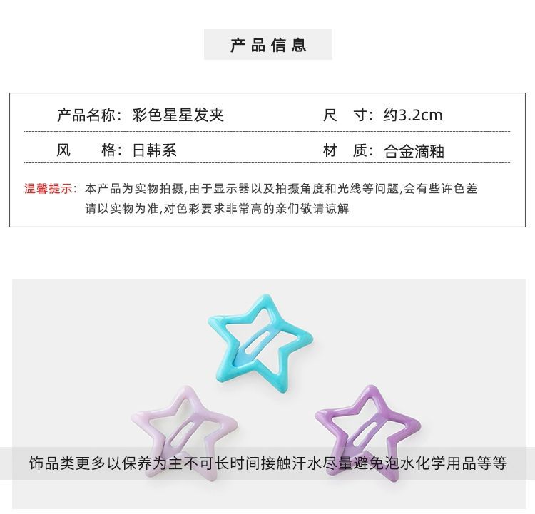 귀여운 별 작은 머리핀 여자의 여름 옆 앞머리 클립 깨진 머리핀 마무리 BB 클립 사랑 머리핀 클립 모자스토어 가기