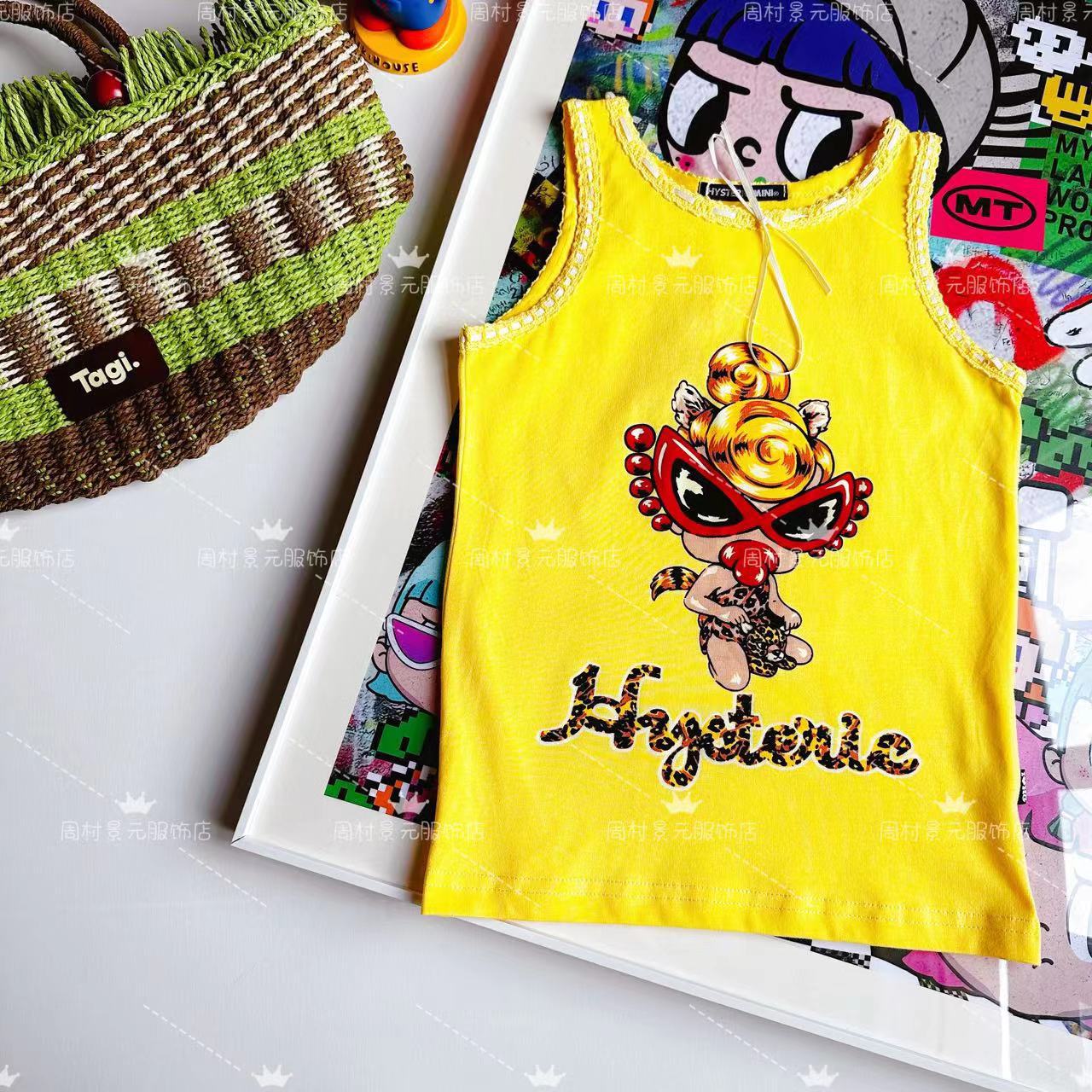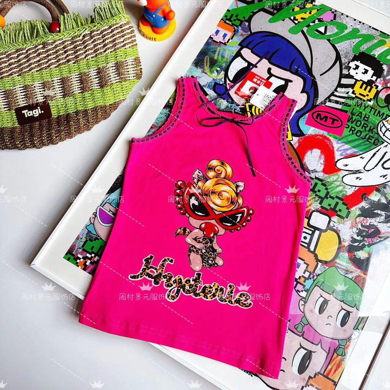 [재고] 징 Yuanjia 23ss 여름 느슨한 귀여운 블랙 슈퍼 수제 활 표범 소녀 조끼스토어 가기