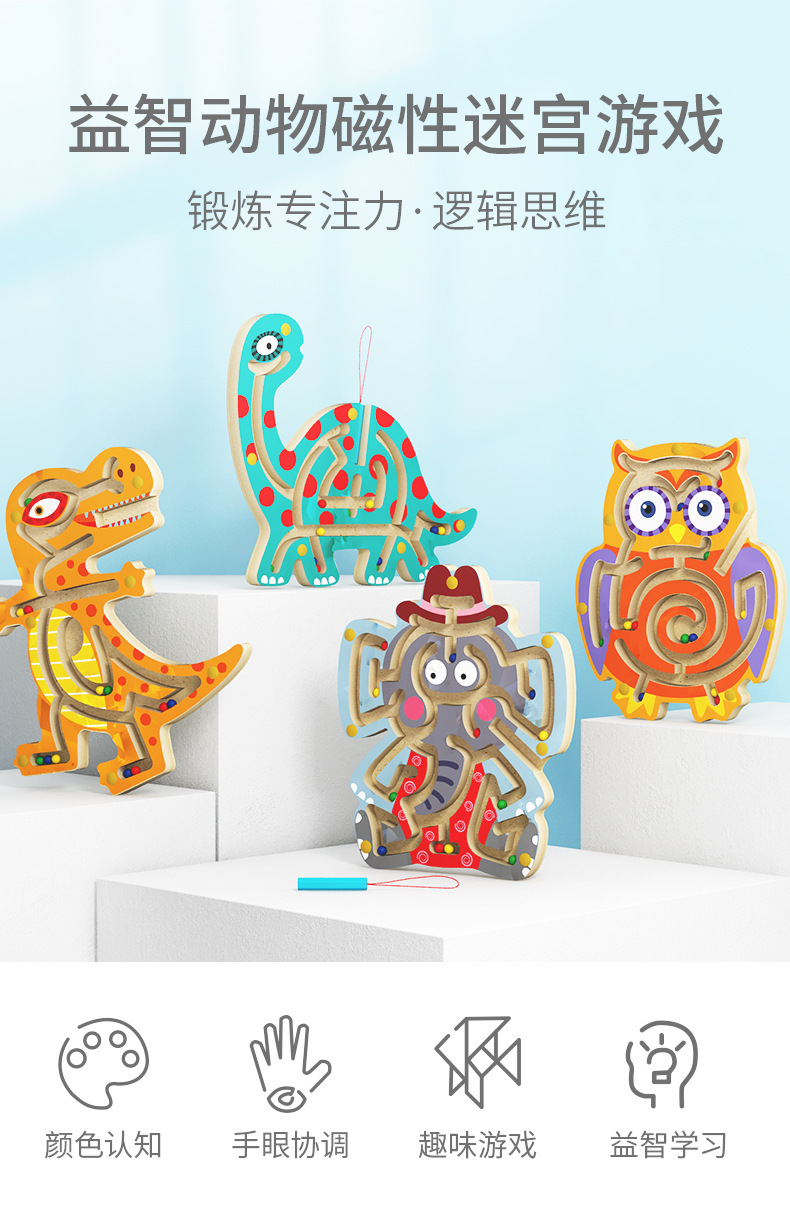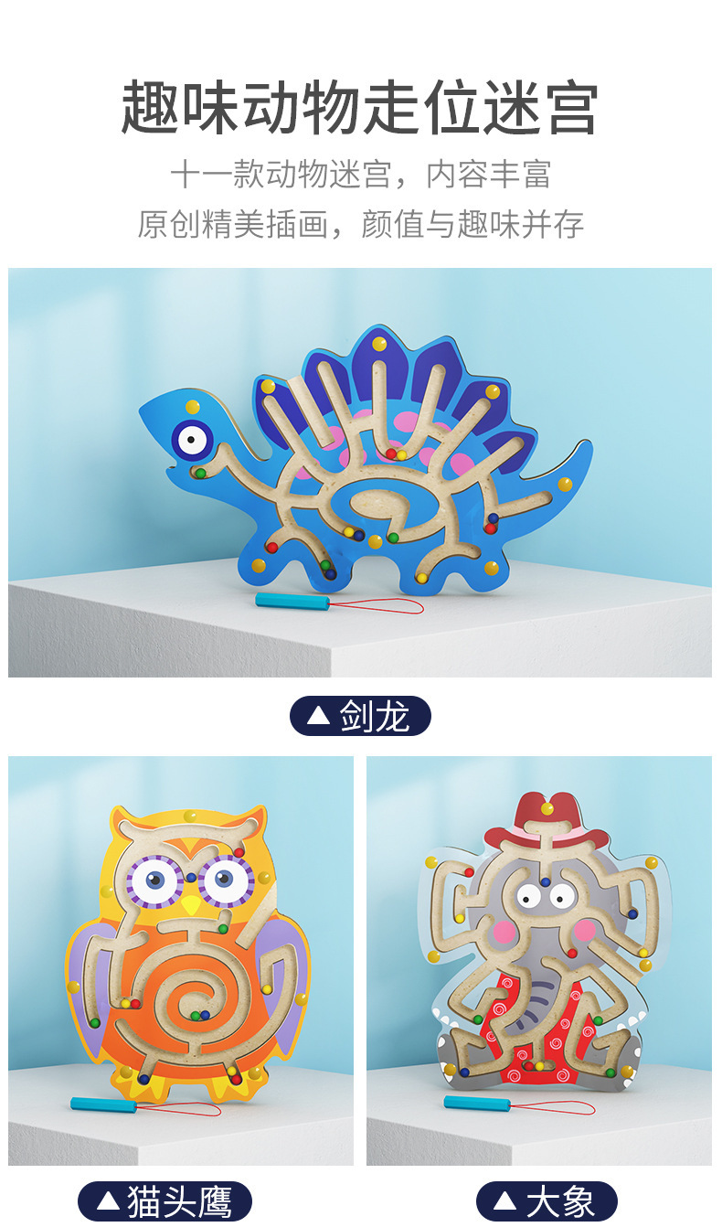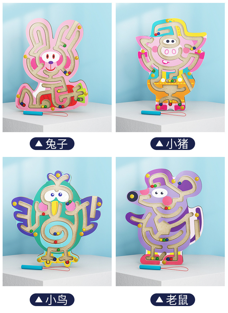 펜 운반 동물 미로 구슬 운반 게임 나무 어린이 마그네틱 펜 위치 이동 미로 퍼즐 나무 장난감 마그네틱 퍼즐스토어 가기
