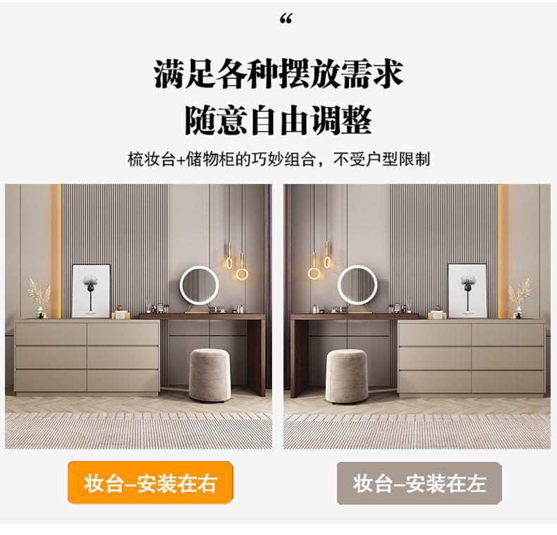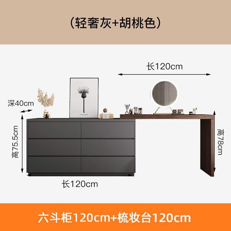 • 120cm 라이트 럭셔리 그레이 버킷 캐비닛 + 오크 후 컬러 드레싱 테이블