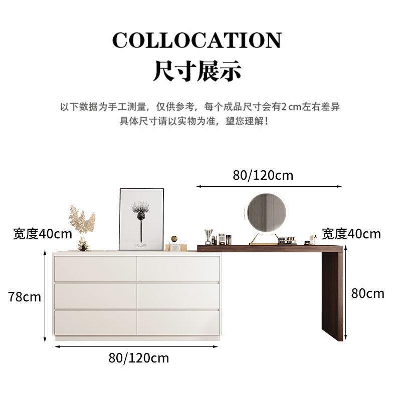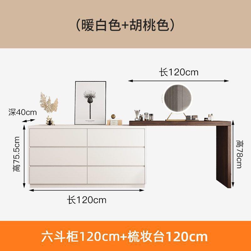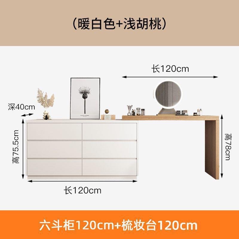 • 120cm 따뜻한 흰색 버킷 캐비닛 + 오크 호두 컬러 드레싱 테이블