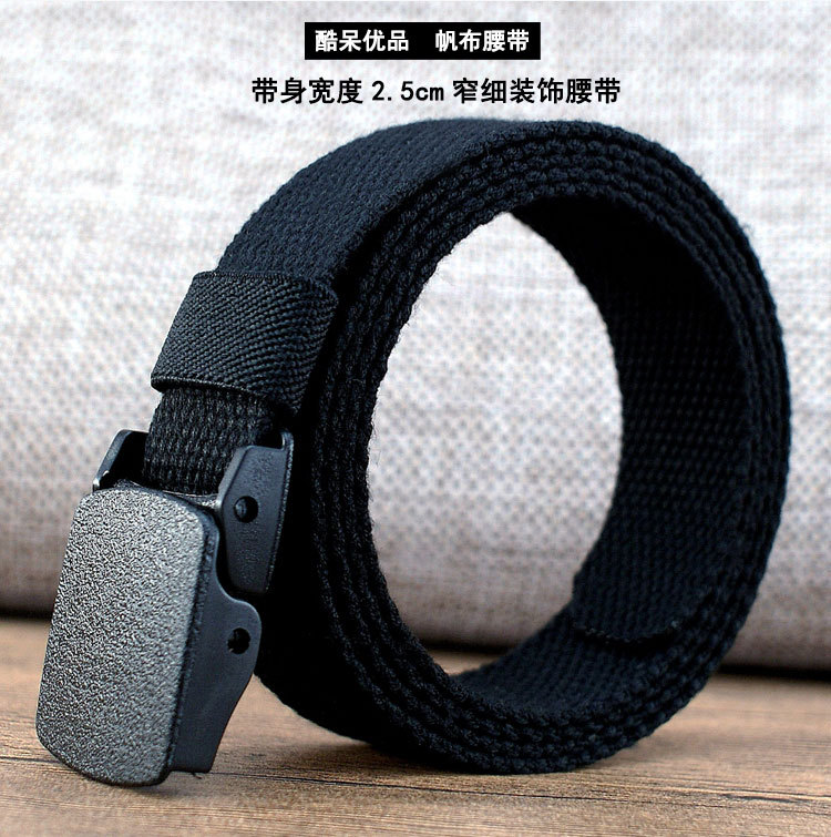 2.5cm 좁고 얇은 학생 여성의 간단한 모든 일치 장식 캔버스 벨트 금속 무료 캔디 컬러 바지 벨트