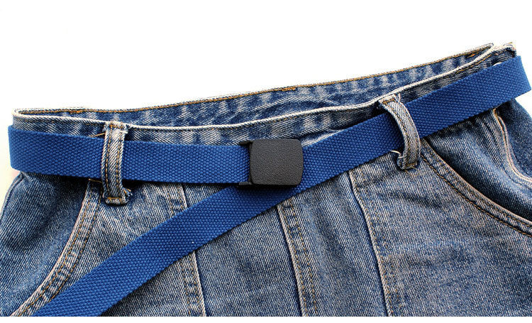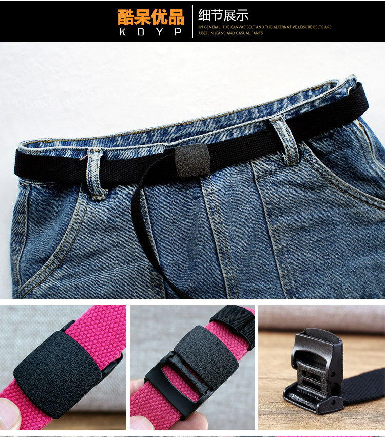 2.5cm 좁고 얇은 학생 여성의 간단한 모든 일치 장식 캔버스 벨트 금속 무료 캔디 컬러 바지 벨트스토어 가기