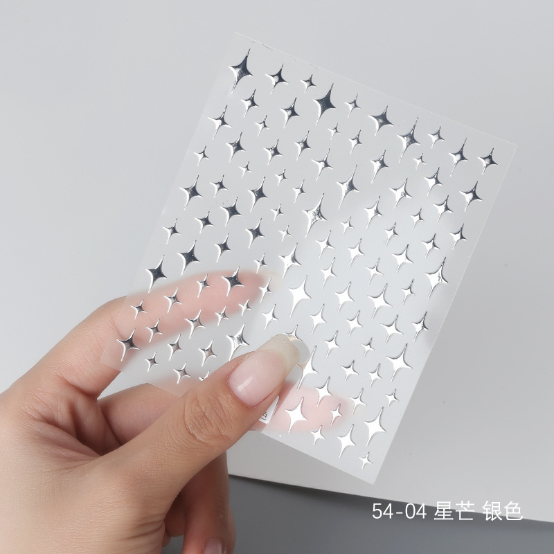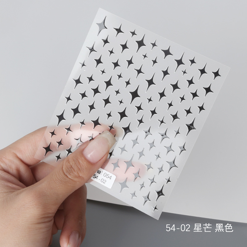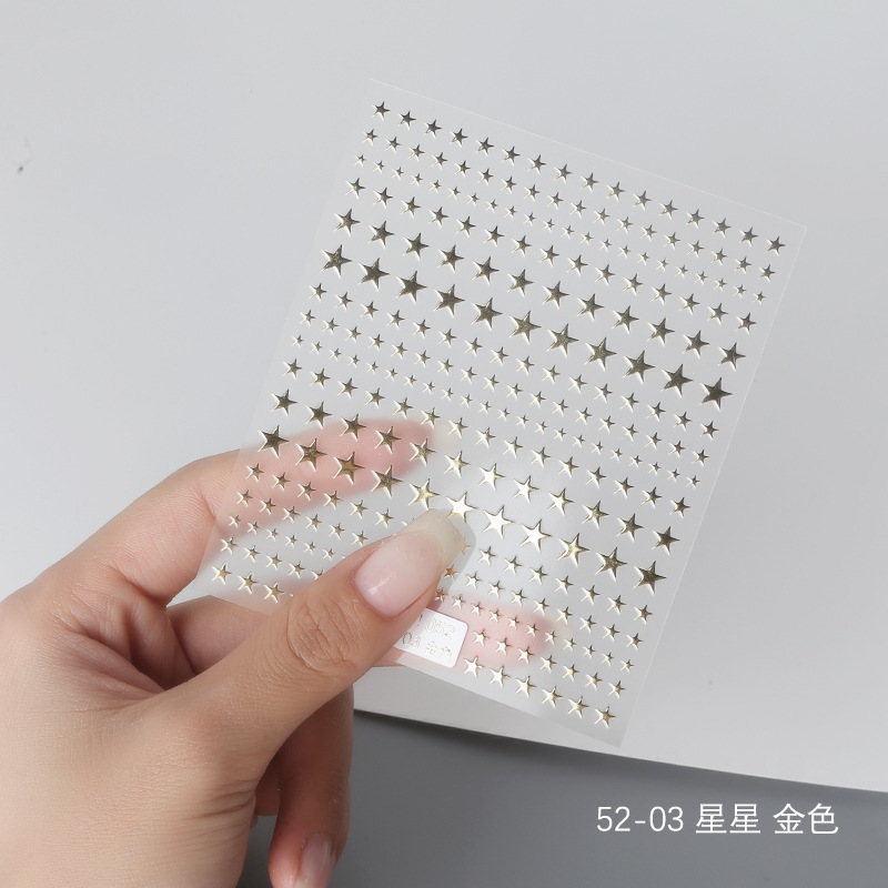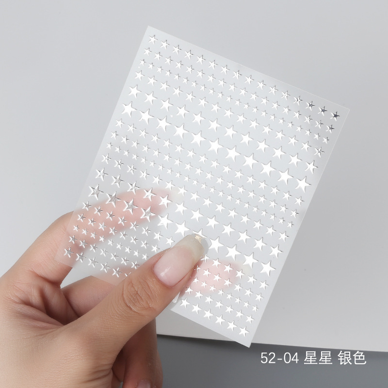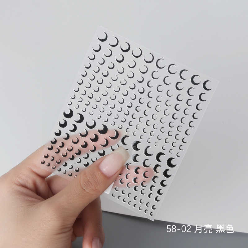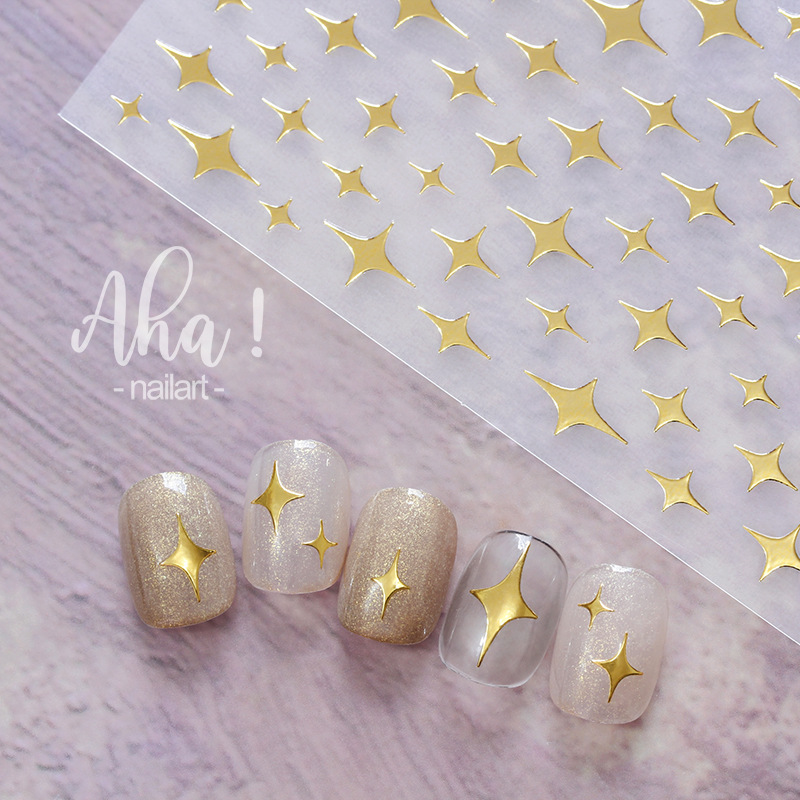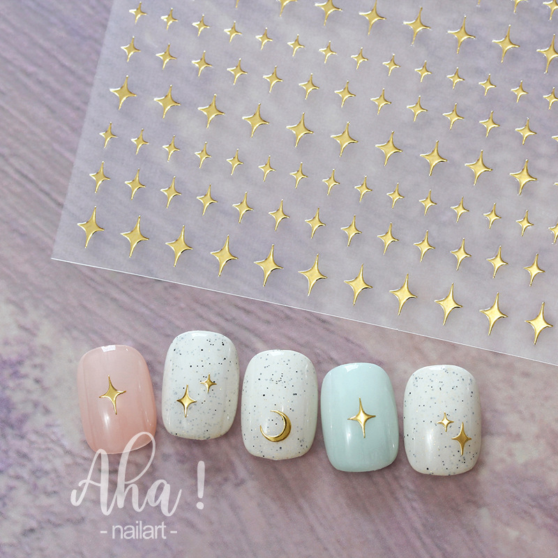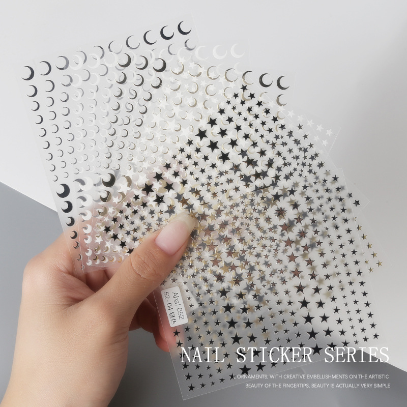 아하 드림 사이즈 별 귀여운 네일 아트 스티커 초승달 별 일본식 금색과 은색 흑백 네일 스티커 장식