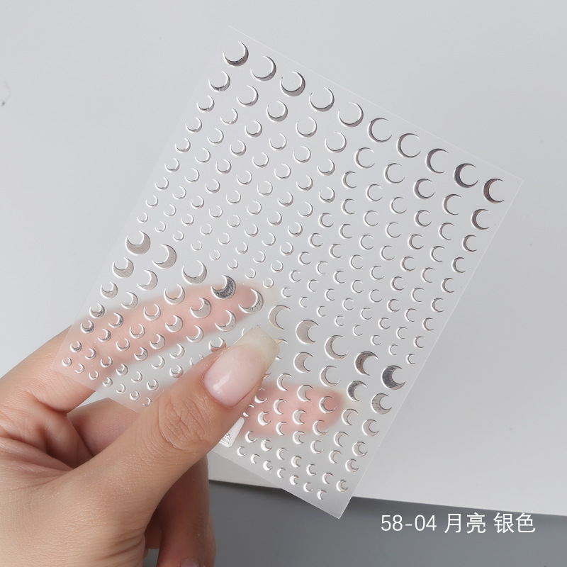 아하 드림 사이즈 별 귀여운 네일 아트 스티커 초승달 별 일본식 금색과 은색 흑백 네일 스티커 장식스토어 가기