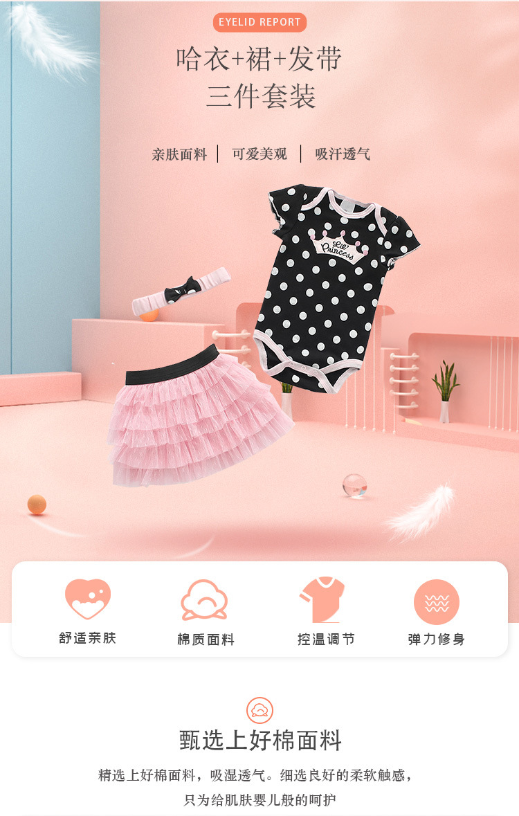 반팔 아기 랩 방귀 옷 도매 삼각형 ha 느슨한 메쉬 스커트 소녀와 옷 어린이 점프 슈트 하 옷 세트스토어 가기