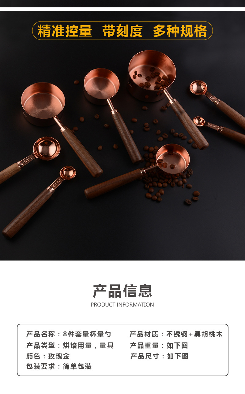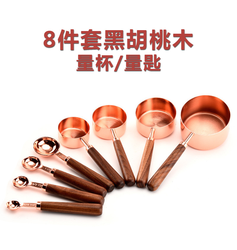 재고 베이킹 스테인레스 스틸 측정 컵 계량 스푼 베이킹 도구 블랙 호두 로즈 골드 측정 컵 계량 스푼 8 개 세트