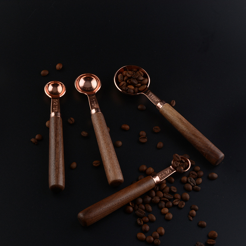 재고 베이킹 스테인레스 스틸 측정 컵 계량 스푼 베이킹 도구 블랙 호두 로즈 골드 측정 컵 계량 스푼 8 개 세트스토어 가기