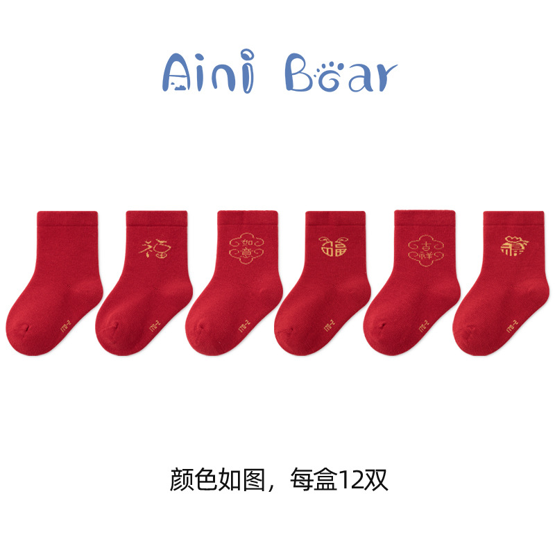 Yini 곰 공장 직접 아기 양말 봄과 가을 귀여운 튜브 큰 빨강 느슨한 입 아기 새해 스타킹스토어 가기