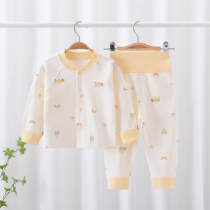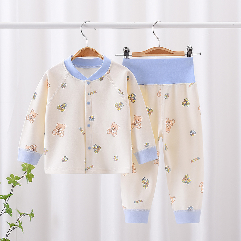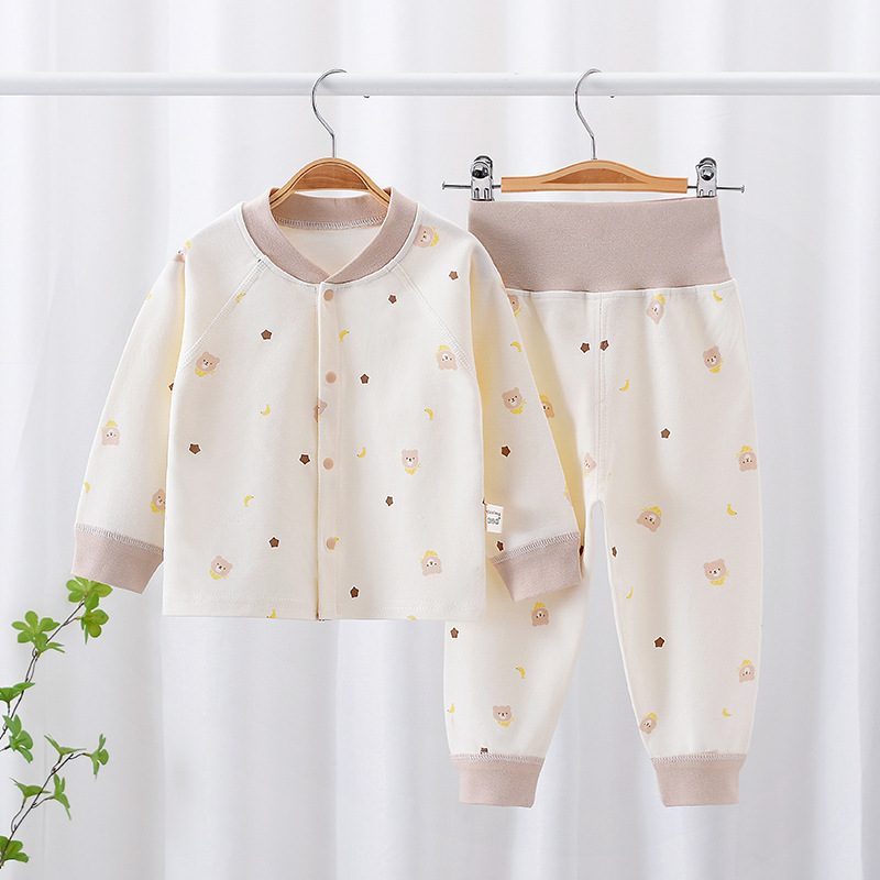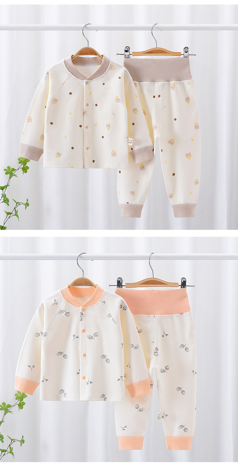 2024 새로운 어린이 가을 옷과 가을 바지 세트 봄과 가을 사계절 아기 소녀 속옷 뼈없는 아기 소년 카디건 잠옷