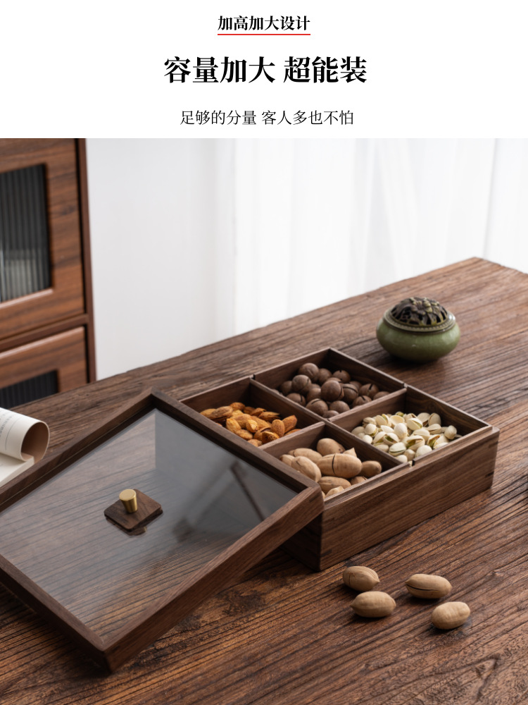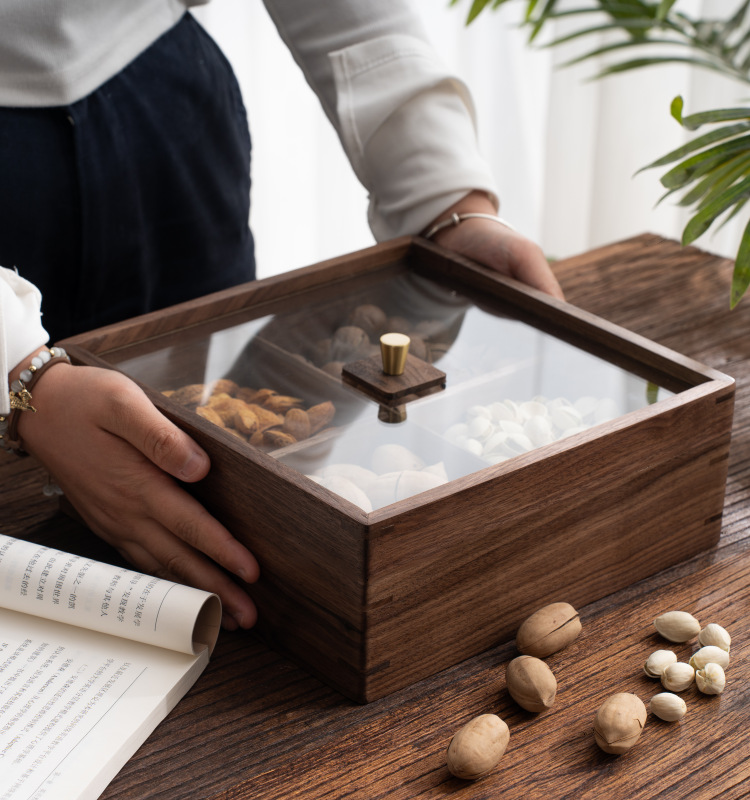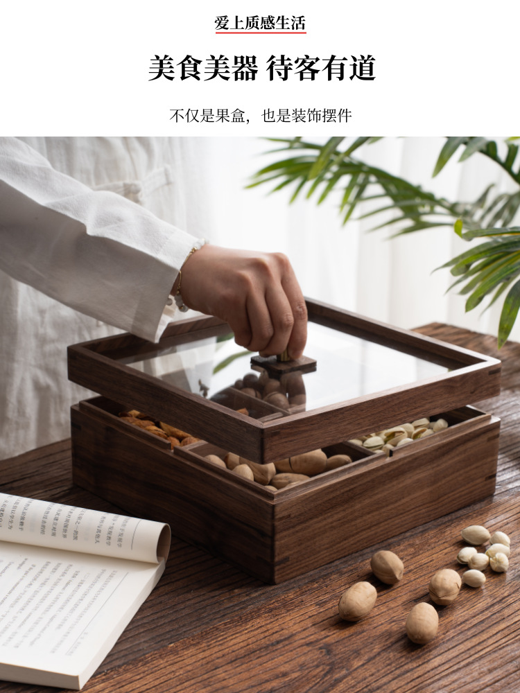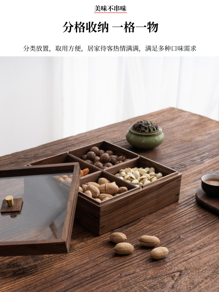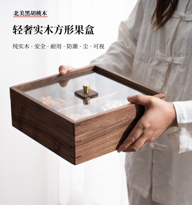 • 가벼운 럭셔리 6 그리드 과일 상자 블랙 호두 손잡이