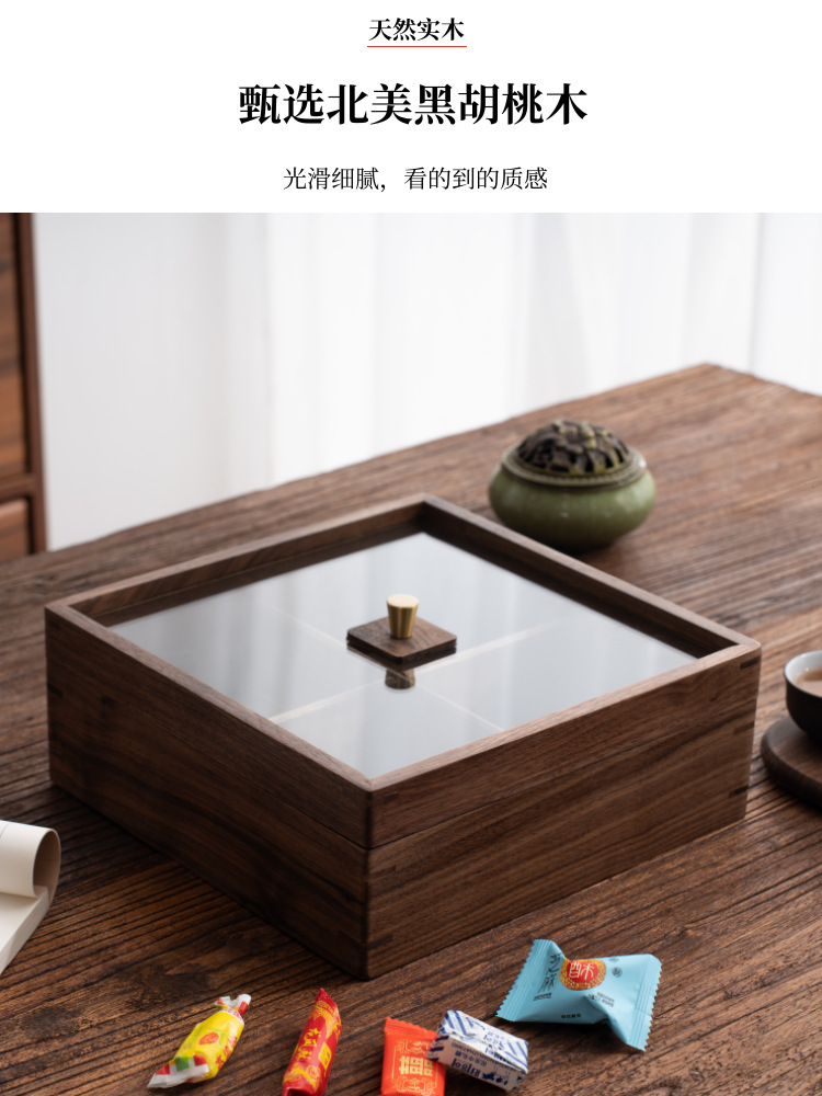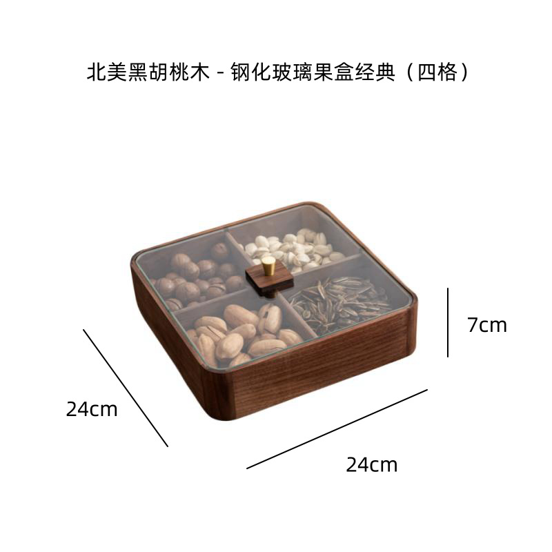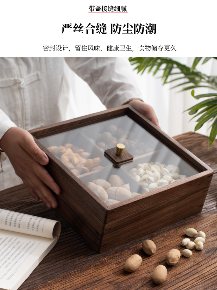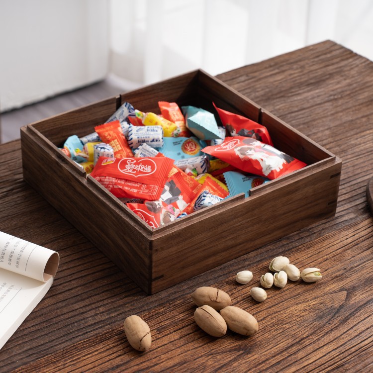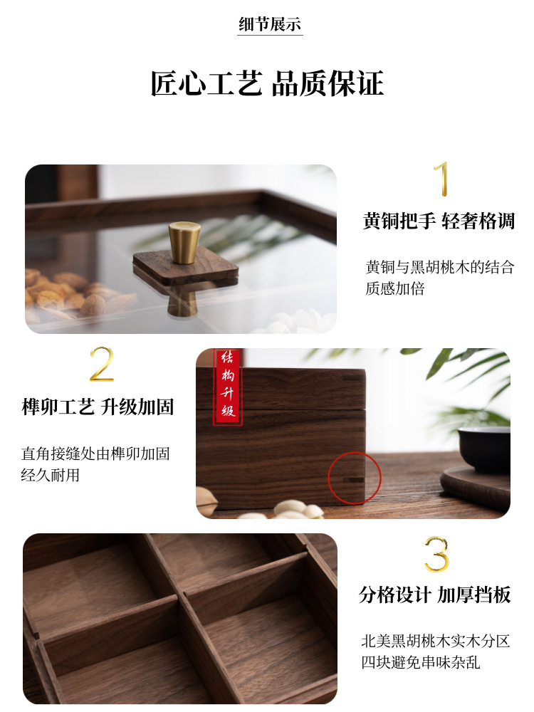 • 가벼운 럭셔리 6 그리드 과일 상자 블랙 호두 손잡이