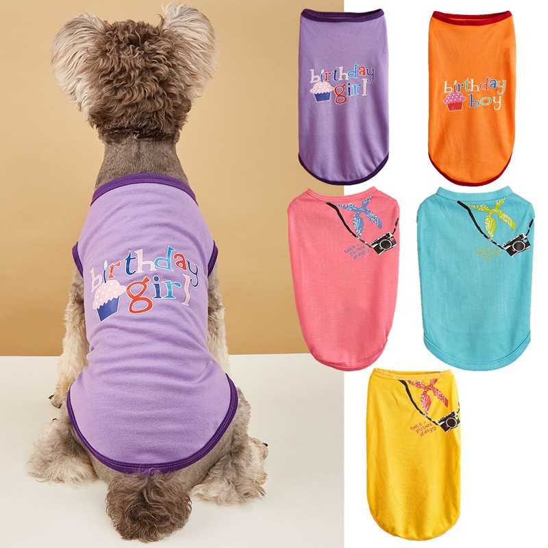 개 옷 봄 여름 케이크 활 생일 축하 영어 인쇄 민소매 애완 동물 개 고양이 조끼스토어 가기