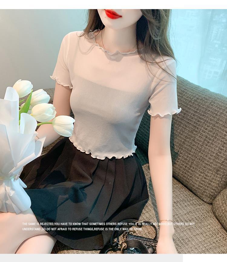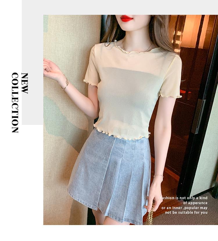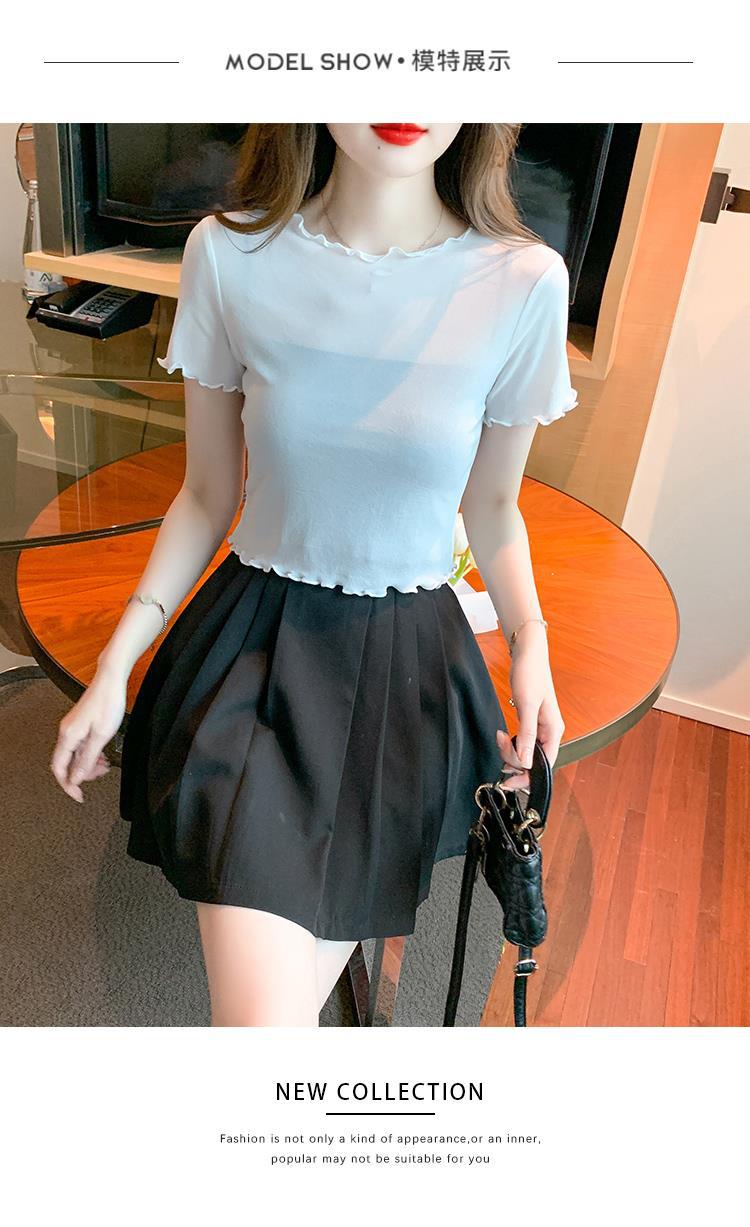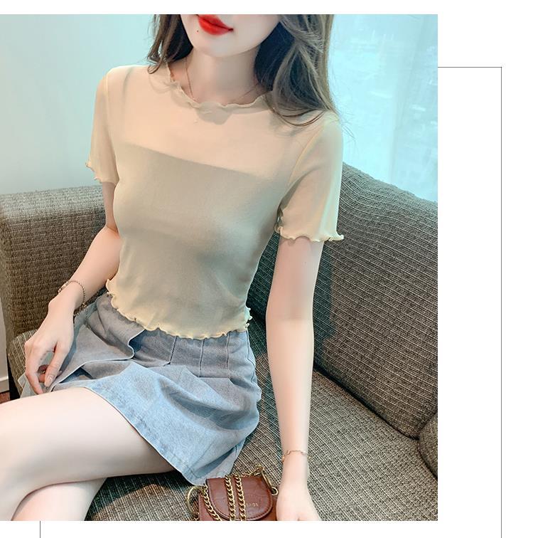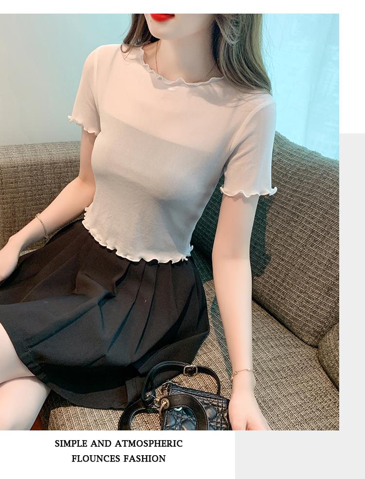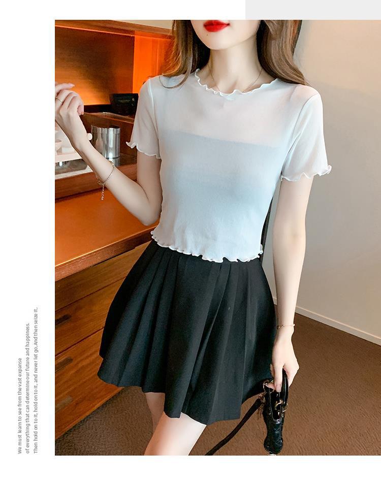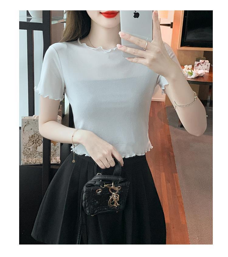 2023 여름 새로운 솔리드 컬러 올매치 짧은 슬림핏 슬리밍 블라우스 시스루 메쉬 여성용 반팔 내부 티셔츠스토어 가기