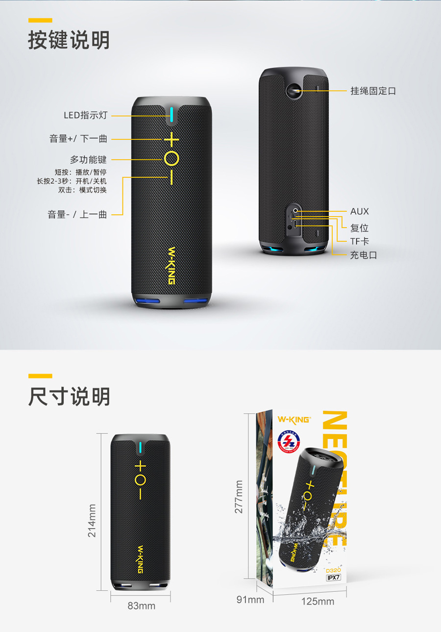 Ville Crystal D320 야외 휴대용 블루투스 오디오 방수 카드 타기 무거운 서브 우퍼 소형 전쟁 드럼 스피커