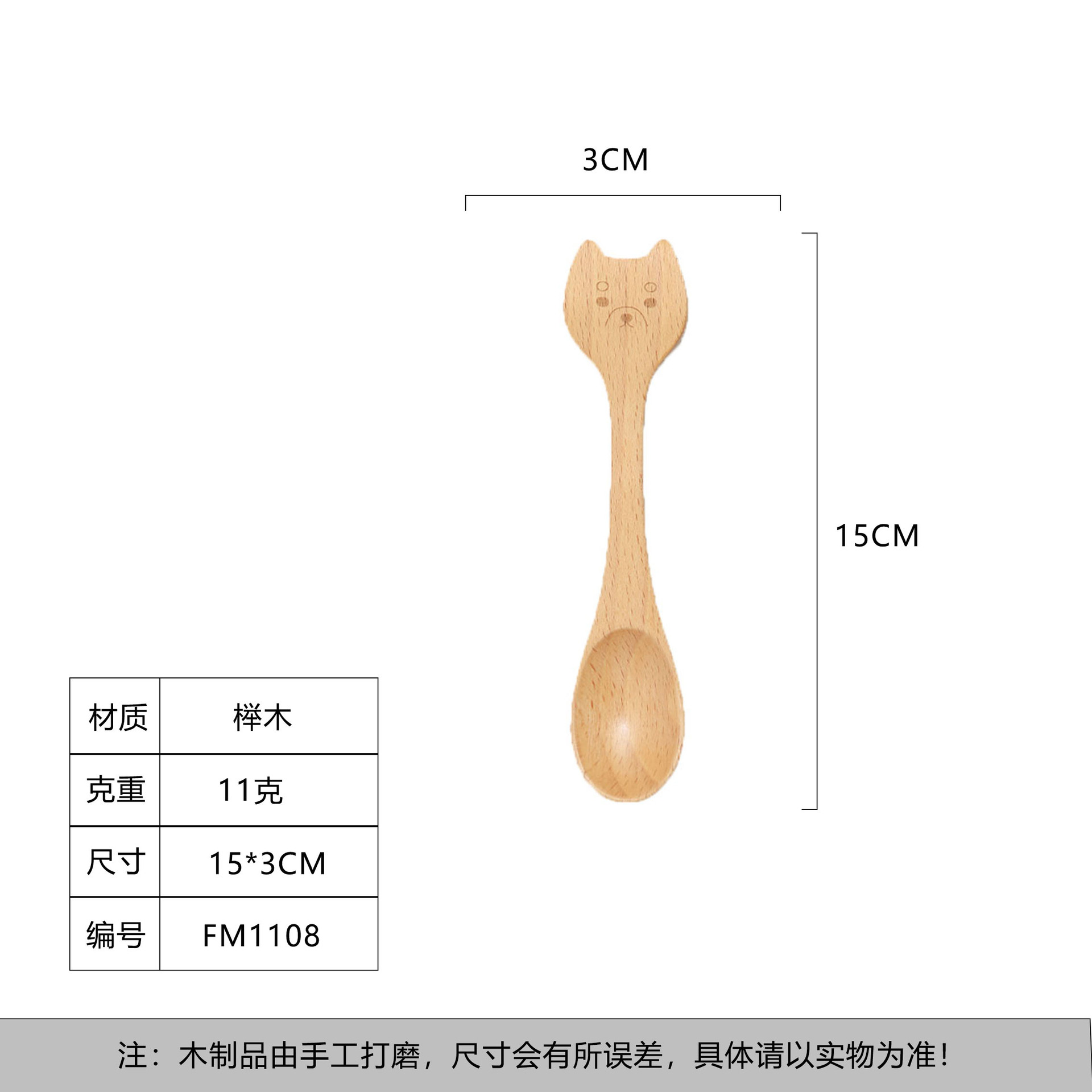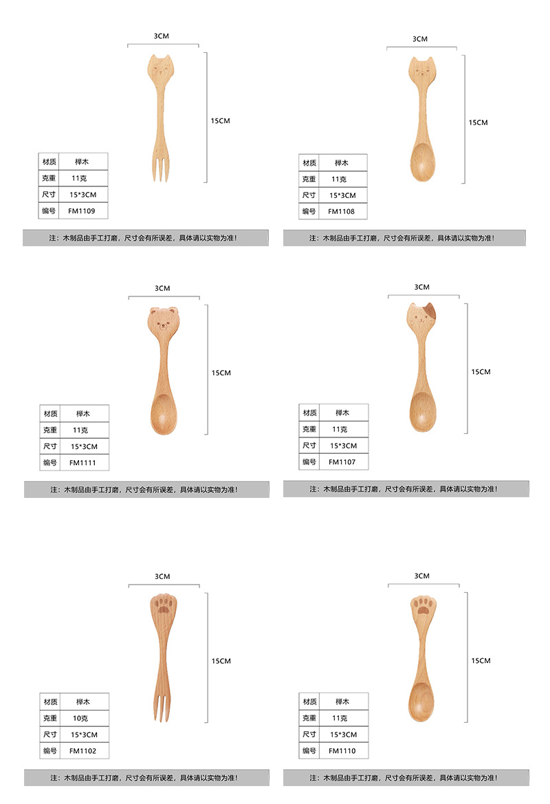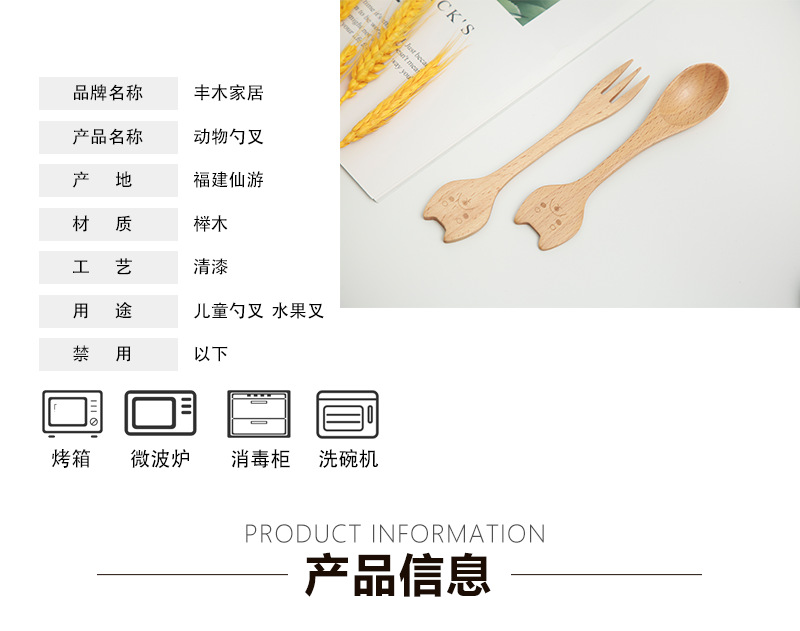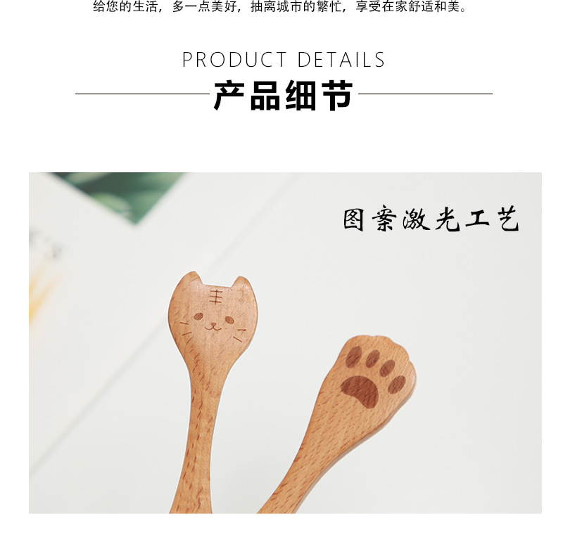 일본식 창조적 인 나무 커피 동물 숟가락 포크 샐러드 휴대용 혼합 숟가락 너도밤 나무 색깔 어린이 나무 숟가락 새겨진 로고스토어 가기