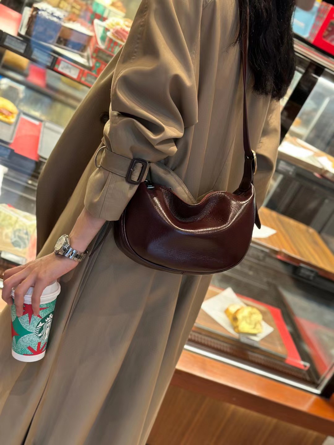 정품 가죽 여성 가방 2025 새로운 패션 겨드랑이 만두 가방 복고풍 통근 소 가죽 어깨 크로스 바디 가방 여성 안장 가방스토어 가기