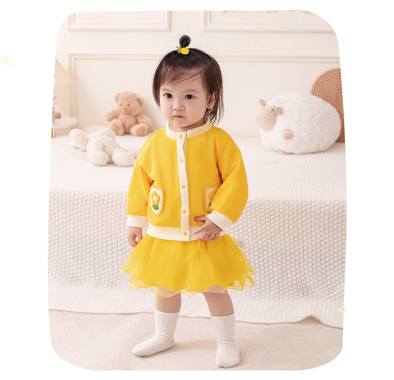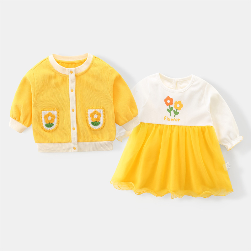 아이디어 아기 2023 가을 투피스 아기 소녀 캐주얼 원피스 소녀 봄과 가을 카디건 세트 3206스토어 가기